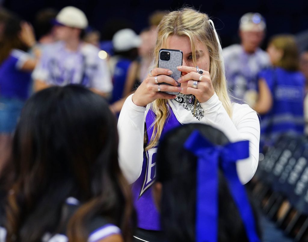 A student takes pictures of her fellow Havocs during Lope-A-Palooza at Global Credit Union Arena on Aug. 29, 2025. -