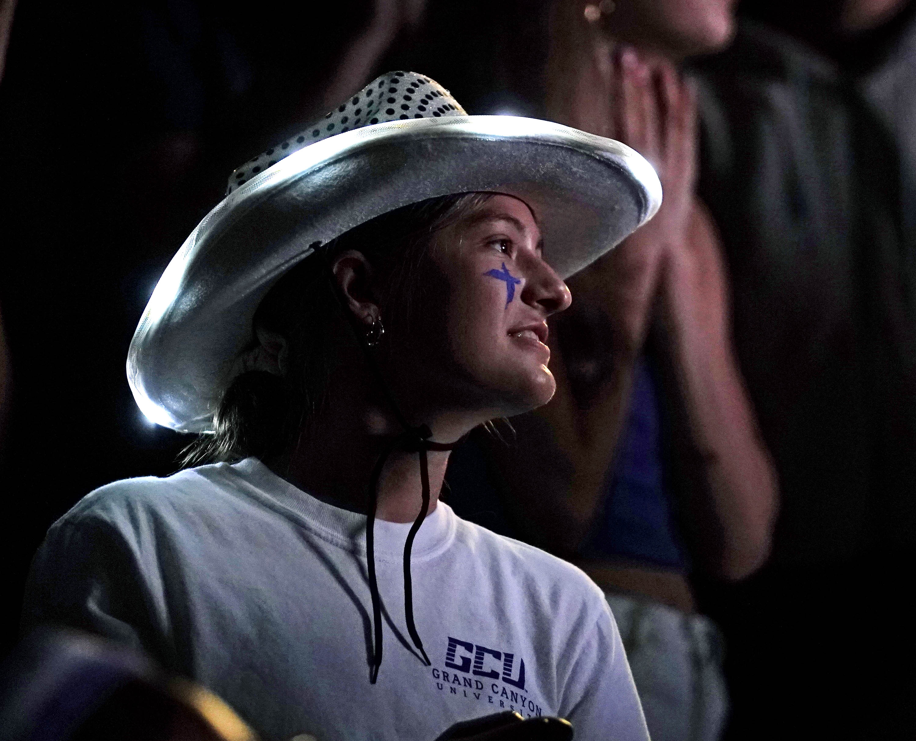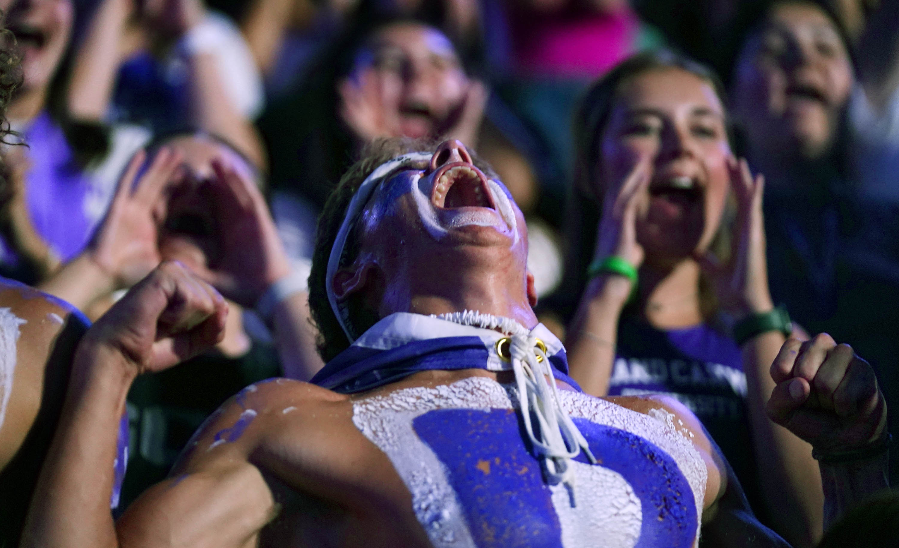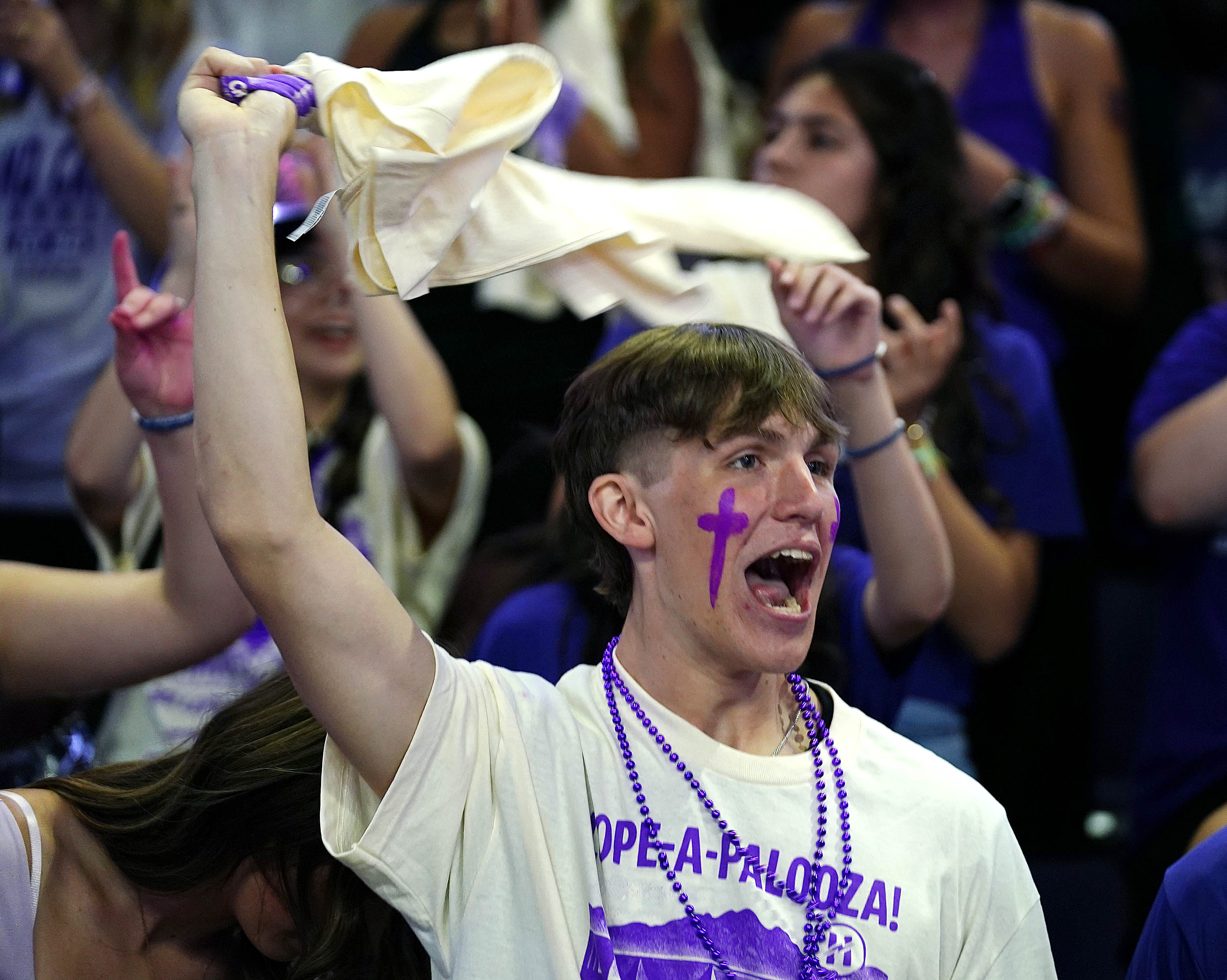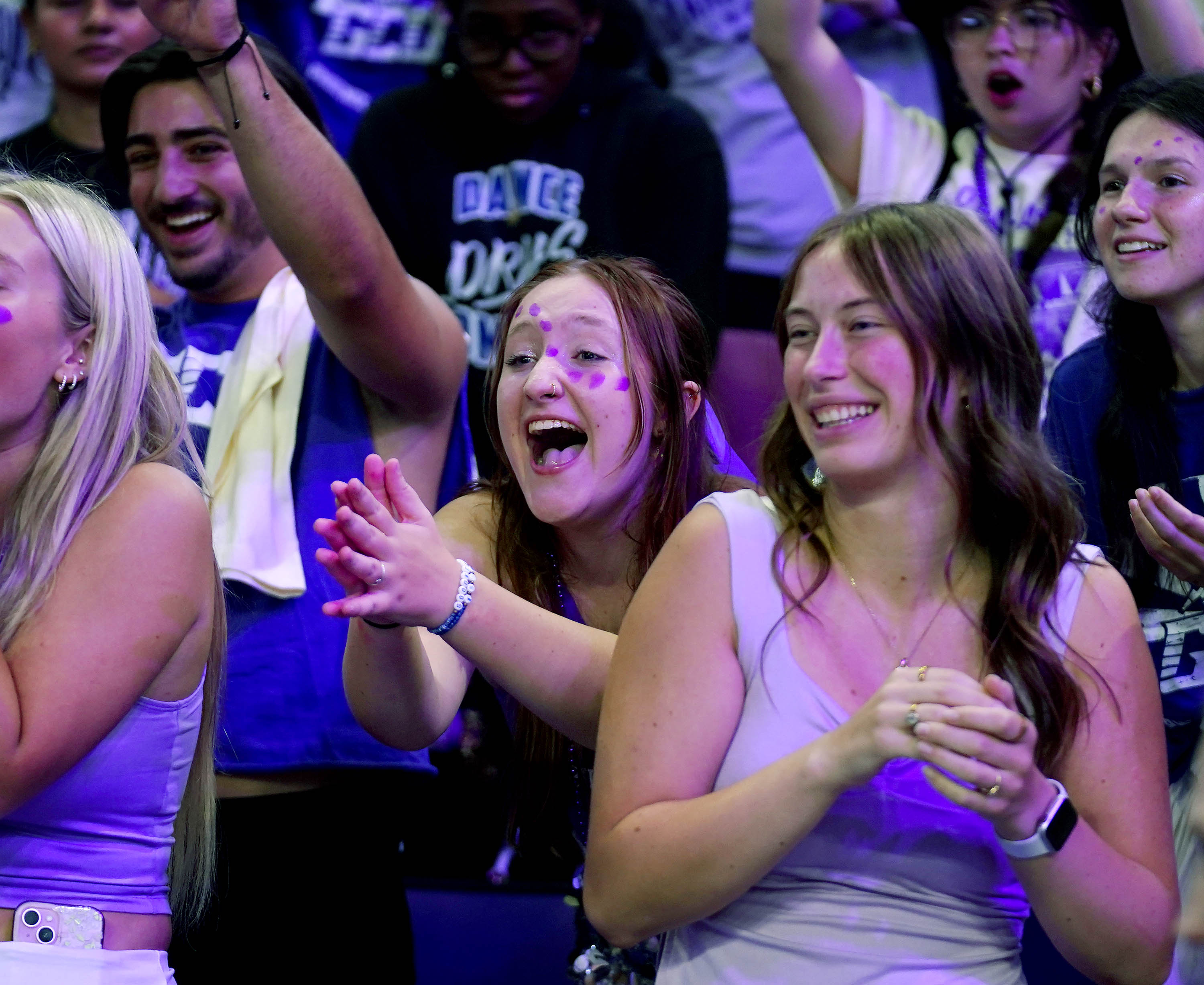 Students plead for Stampede during Lope-A-Palooza at Global Credit Union Arena on Aug. 29, 2025. -
