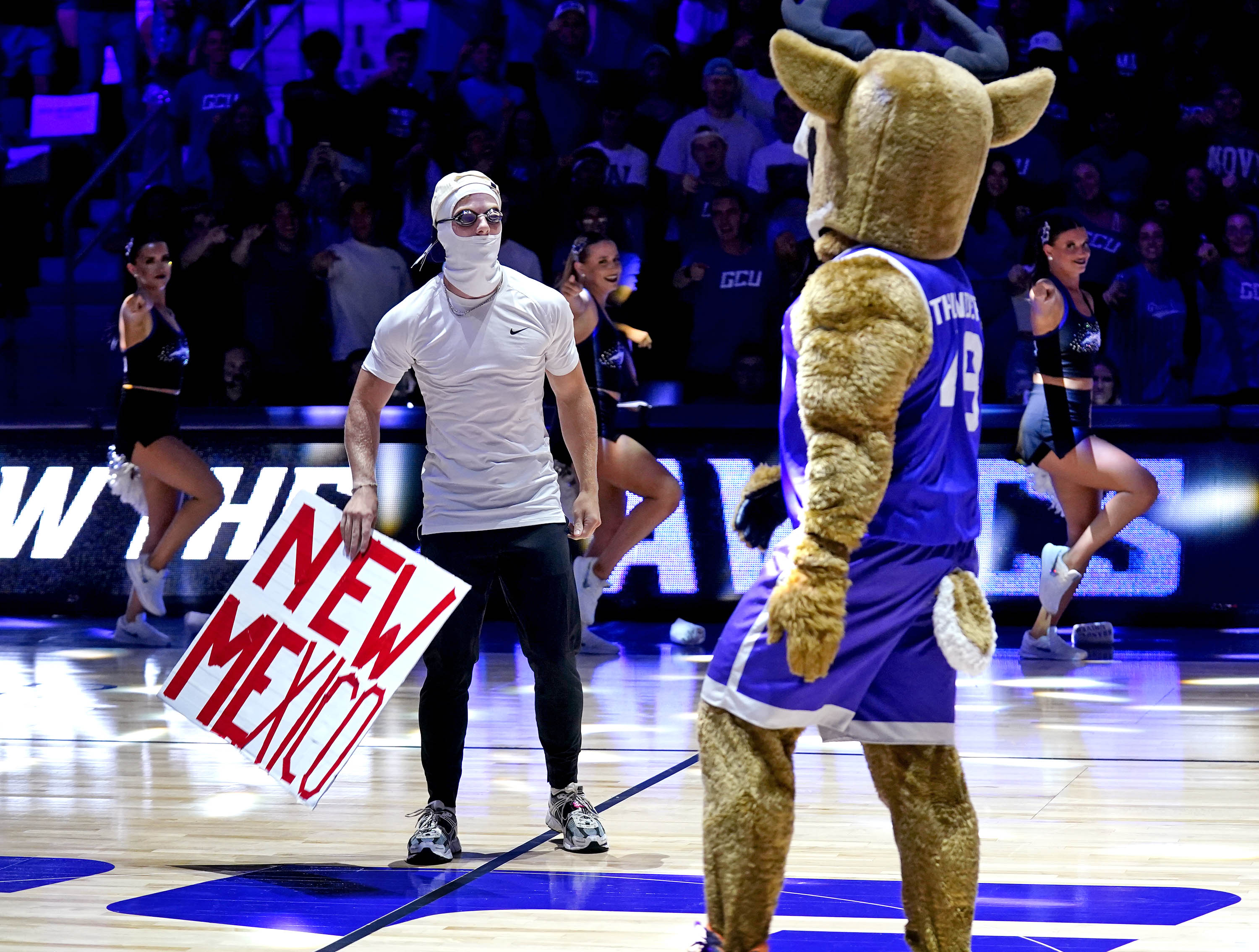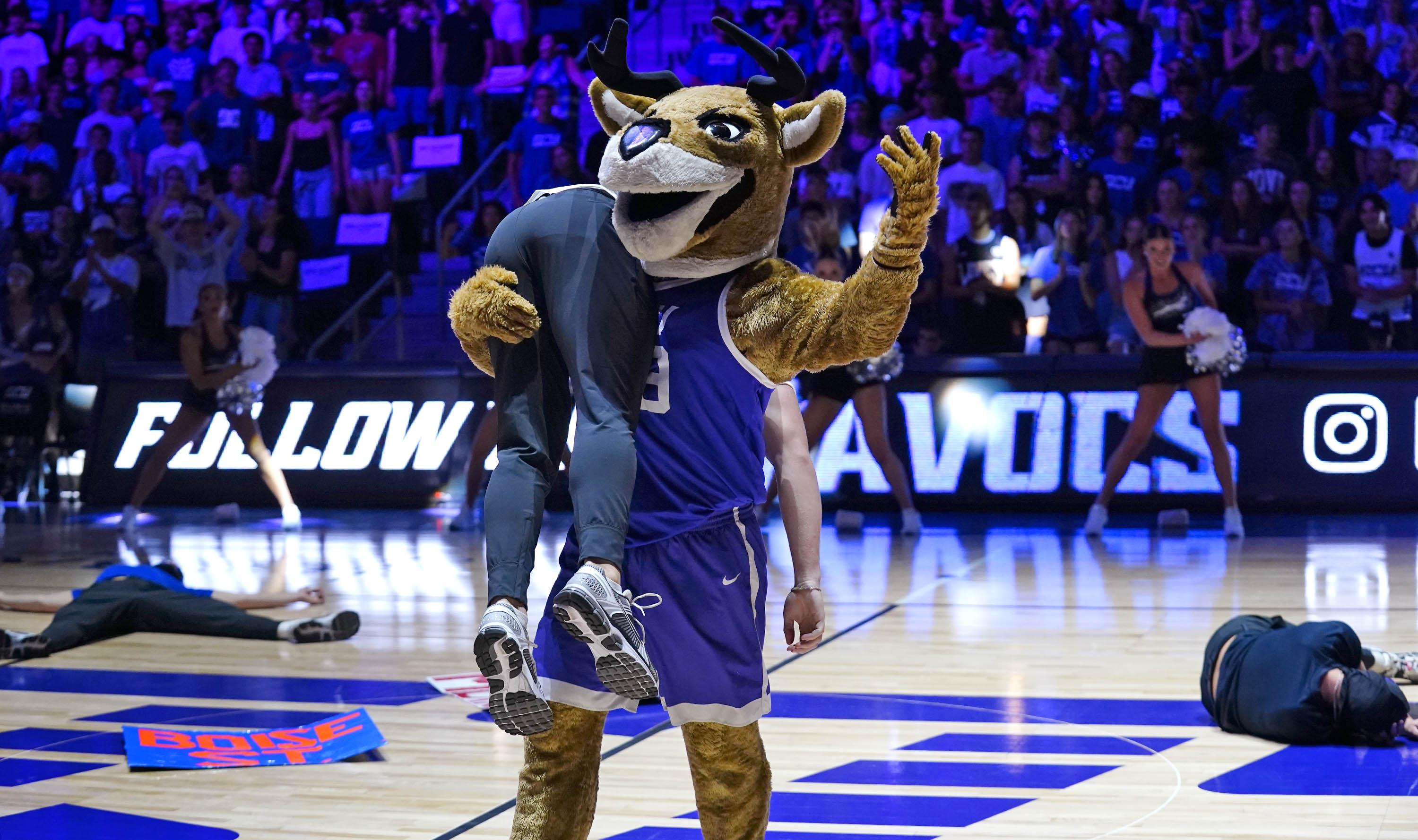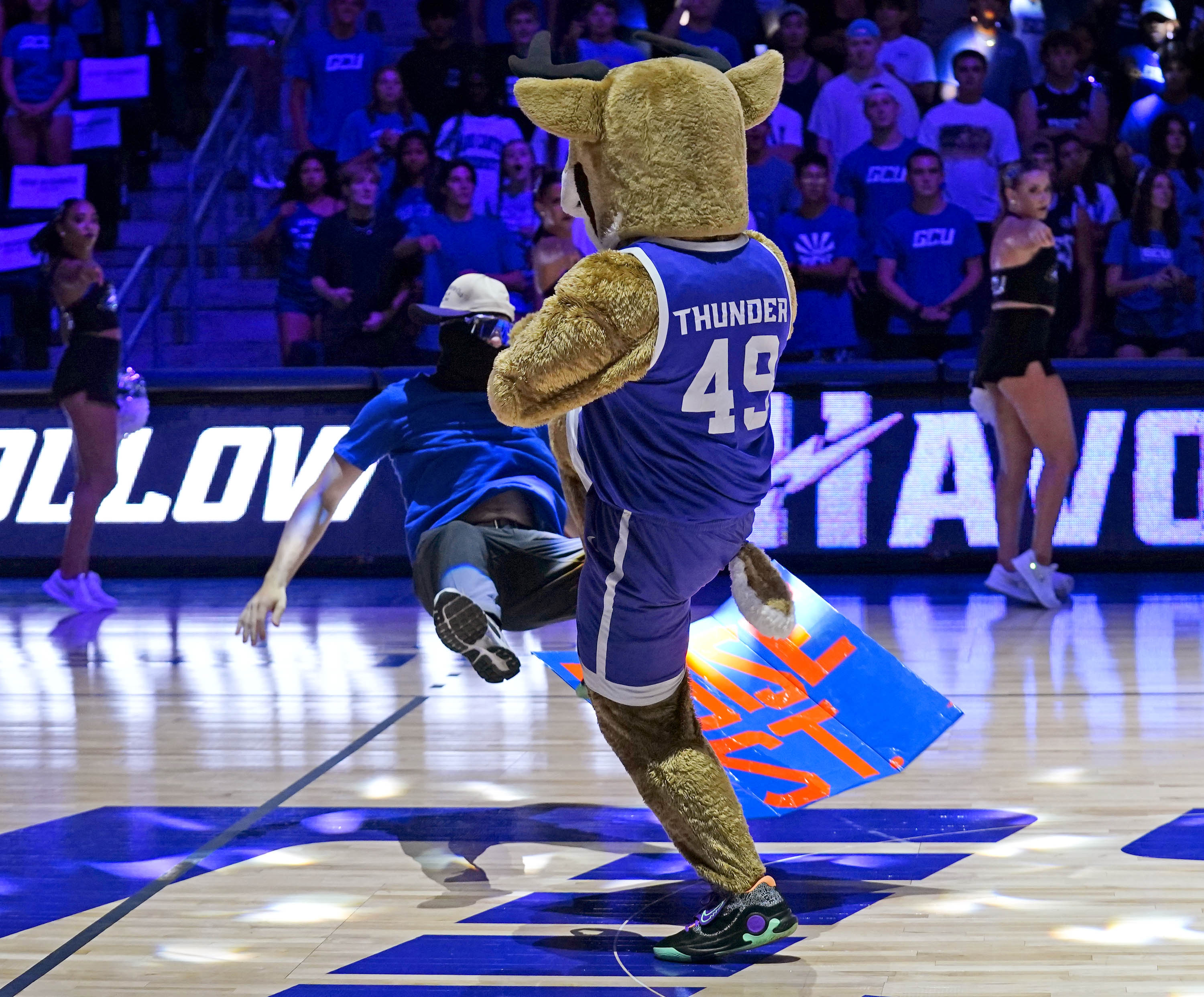Thunder joins in on the school fight song with the dance team during Lope-A-Palooza at Global Credit Union Arena on Aug. 29, 2025. -