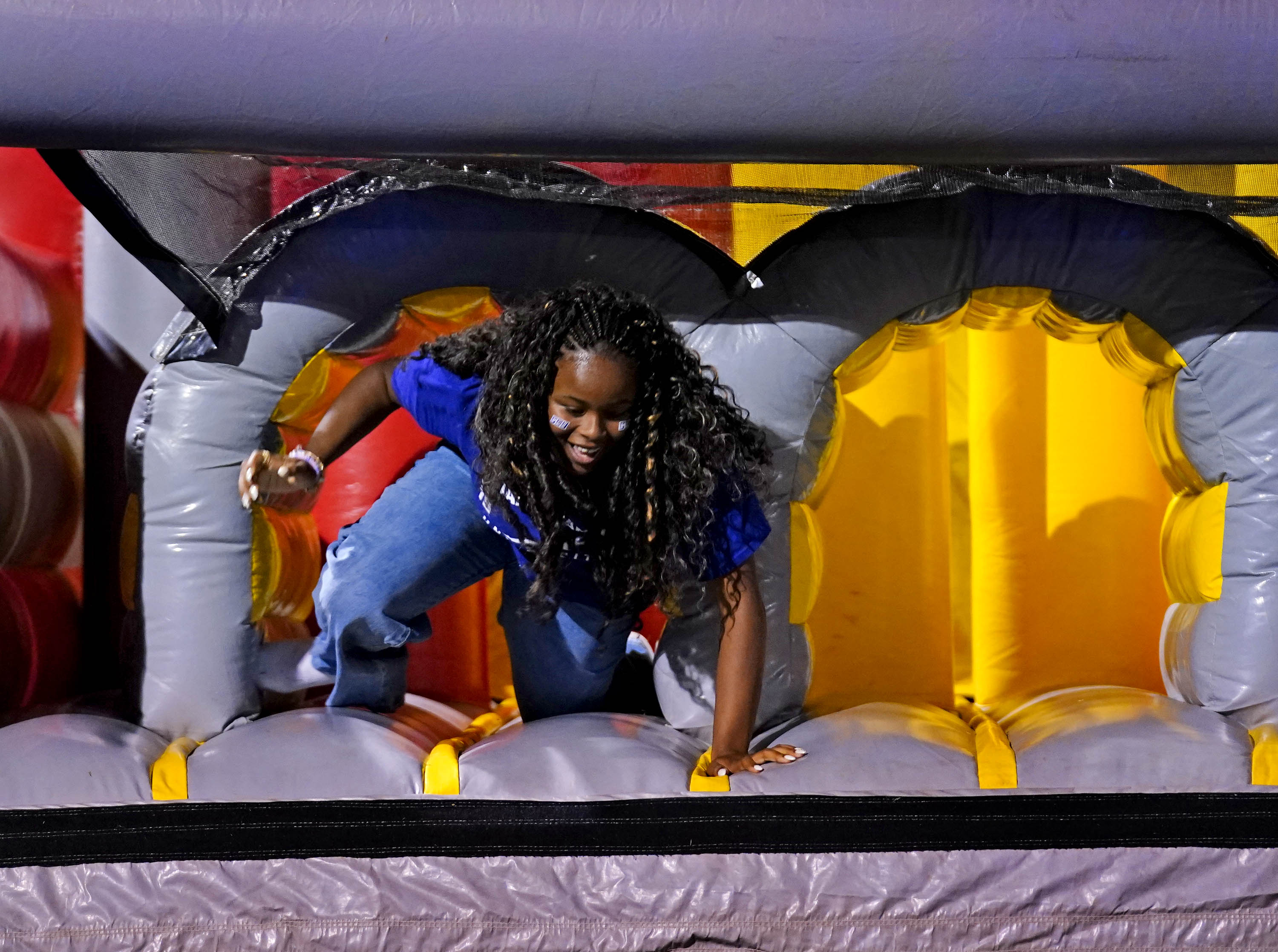Students make their way through an inflatable obstacle course during the Lope-A-Palooza Festival at Prescott Field on Aug. 29, 2025. -