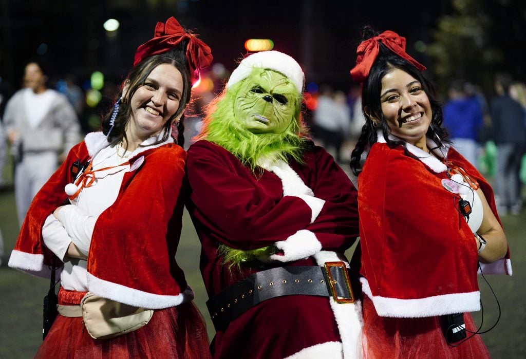 The Grinch and his Who helpers welcome students to the ASGCU-sponsored Midnight Breakfast in Whoville at Prescott Field on Dec. 3, 2025. -