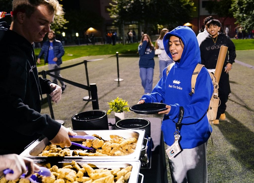 Students enjoying the festivities during the ASGCU-sponsored Midnight Breakfast in Whoville at Prescott Field on Dec. 3, 2025.