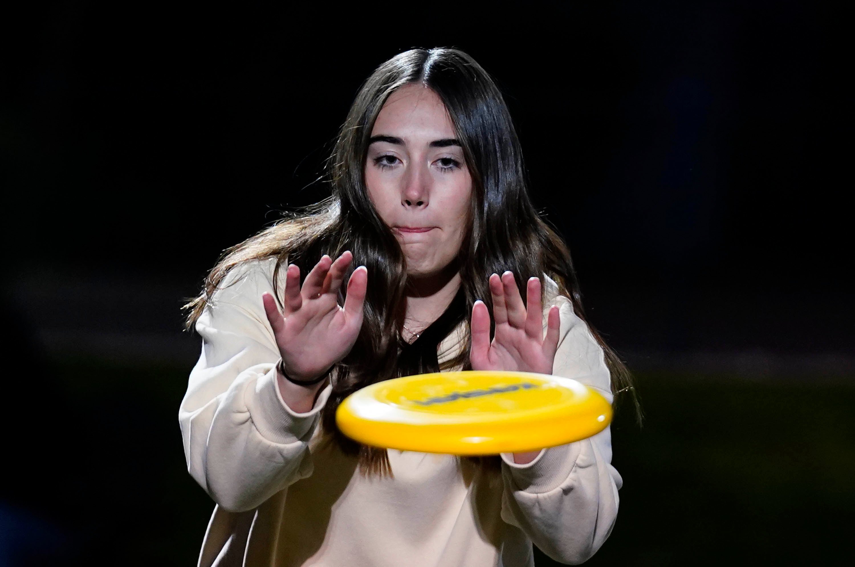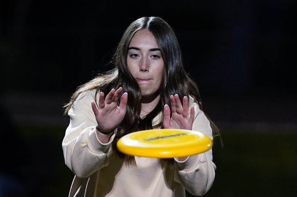 A student redirects a flying disc in a game of Kan Jam during the ASGCU-sponsored Midnight Breakfast in Whoville at Prescott Field on Dec. 3, 2025. -