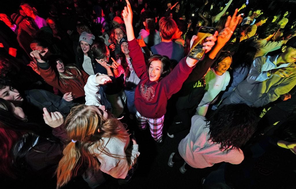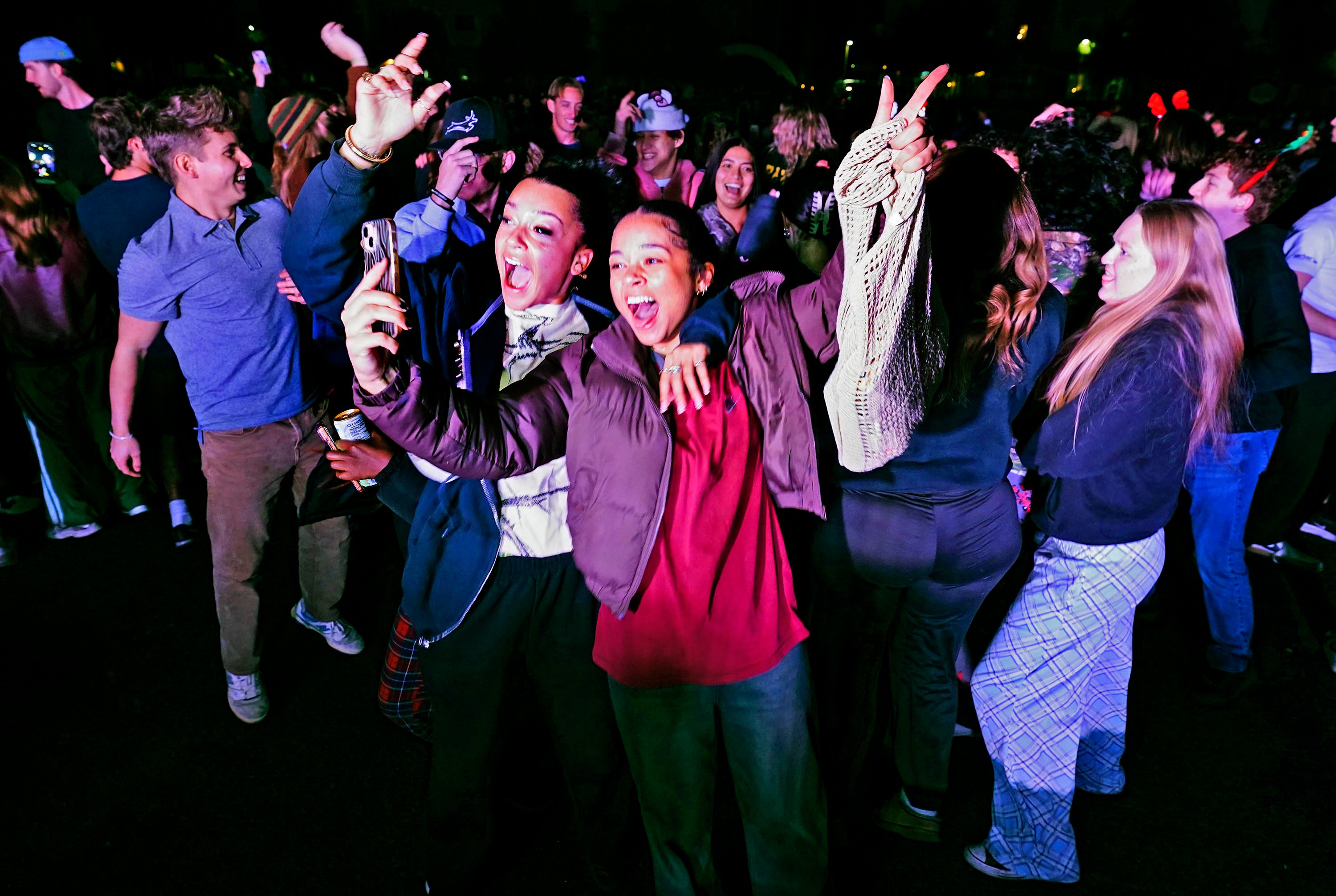 Students are ready to party as they dance into the night during the ASGCU-sponsored Midnight Breakfast in Whoville at Prescott Field on Dec. 3, 2025. -