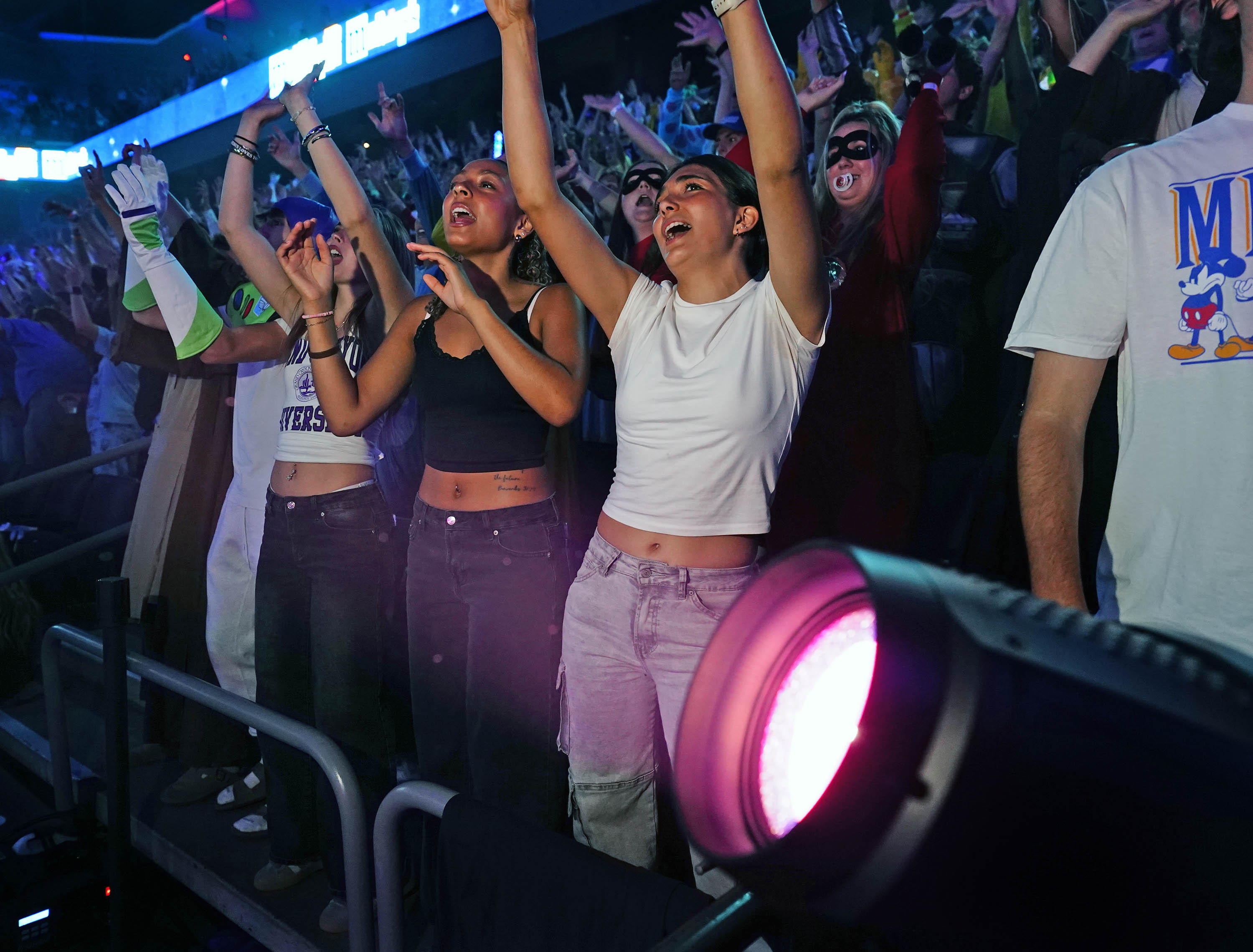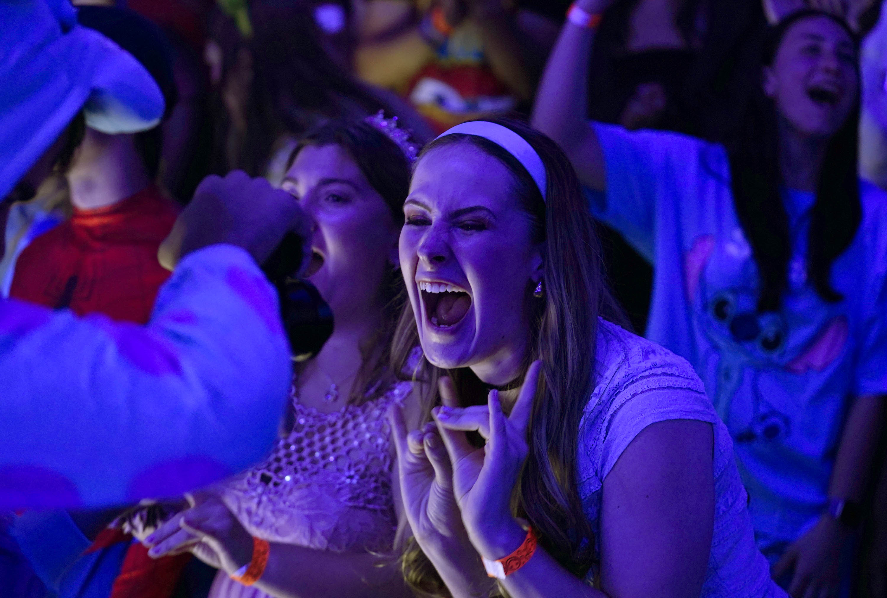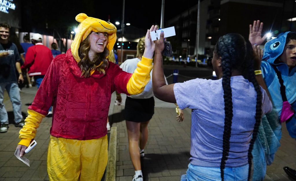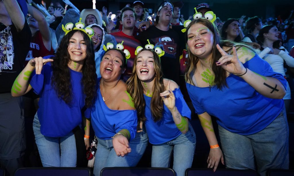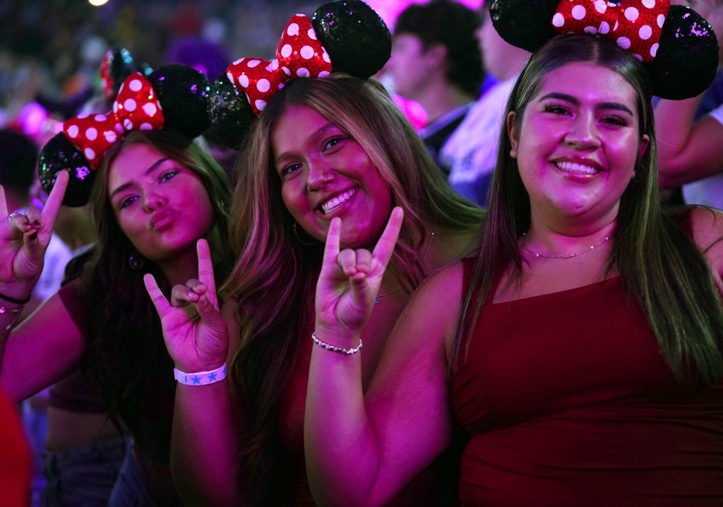 Students sport their Minnie Mouse ears during Midnight Madness at Global Credit Union Arena on Oct. 3, 2025 -