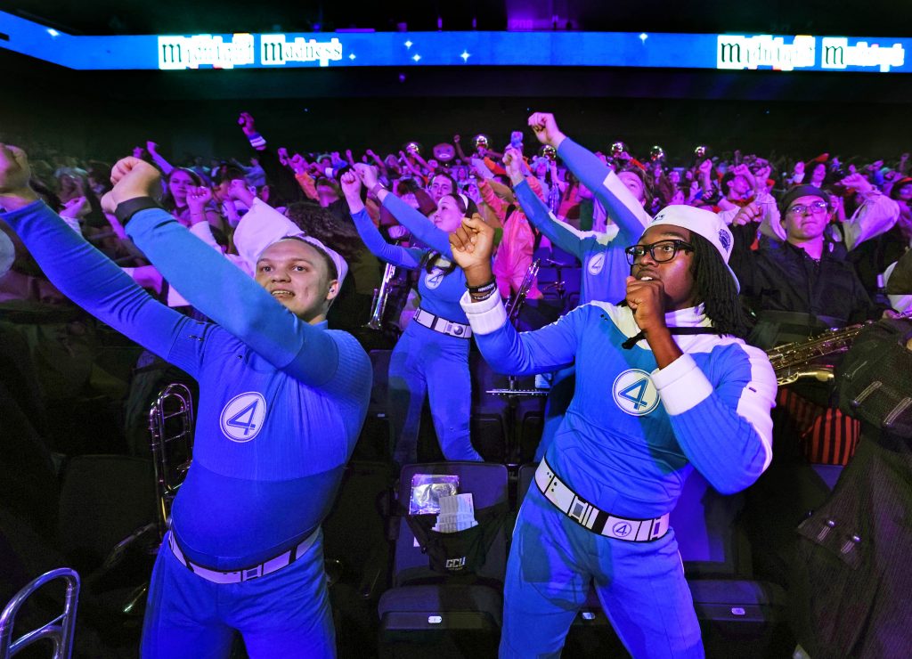 These four Thundering Heard Pep Band members are feeling fantastic during Midnight Madness at Global Credit Union Arena on Oct. 3, 2025 -