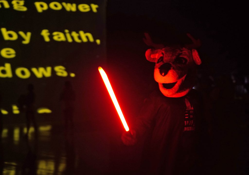 Thunder wields a lightsaber as the GCU men’s basketball team is announced during Midnight Madness at Global Credit Union Arena on Oct. 3, 2025 -