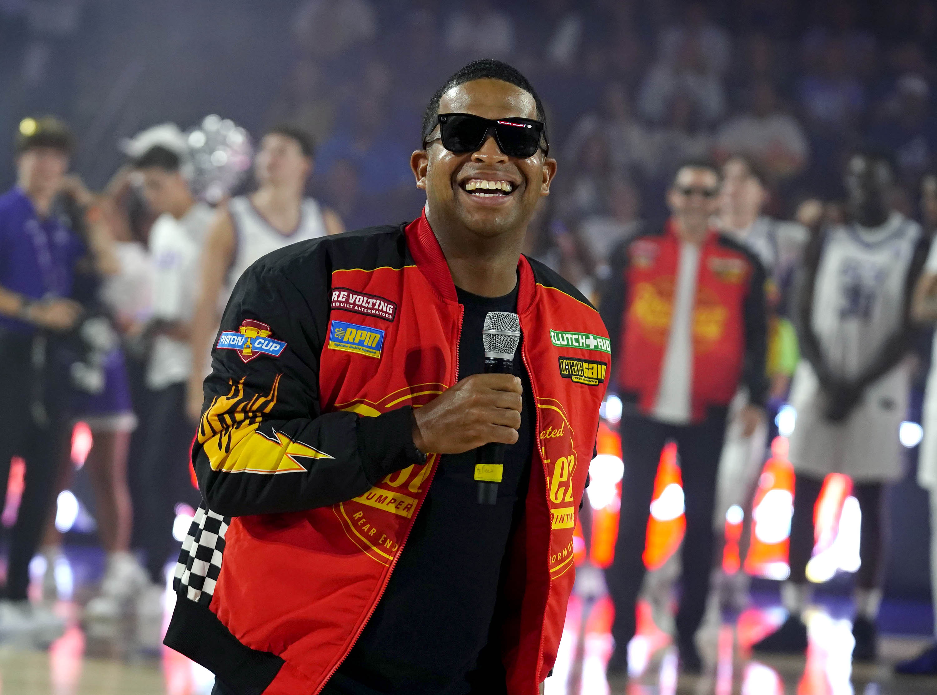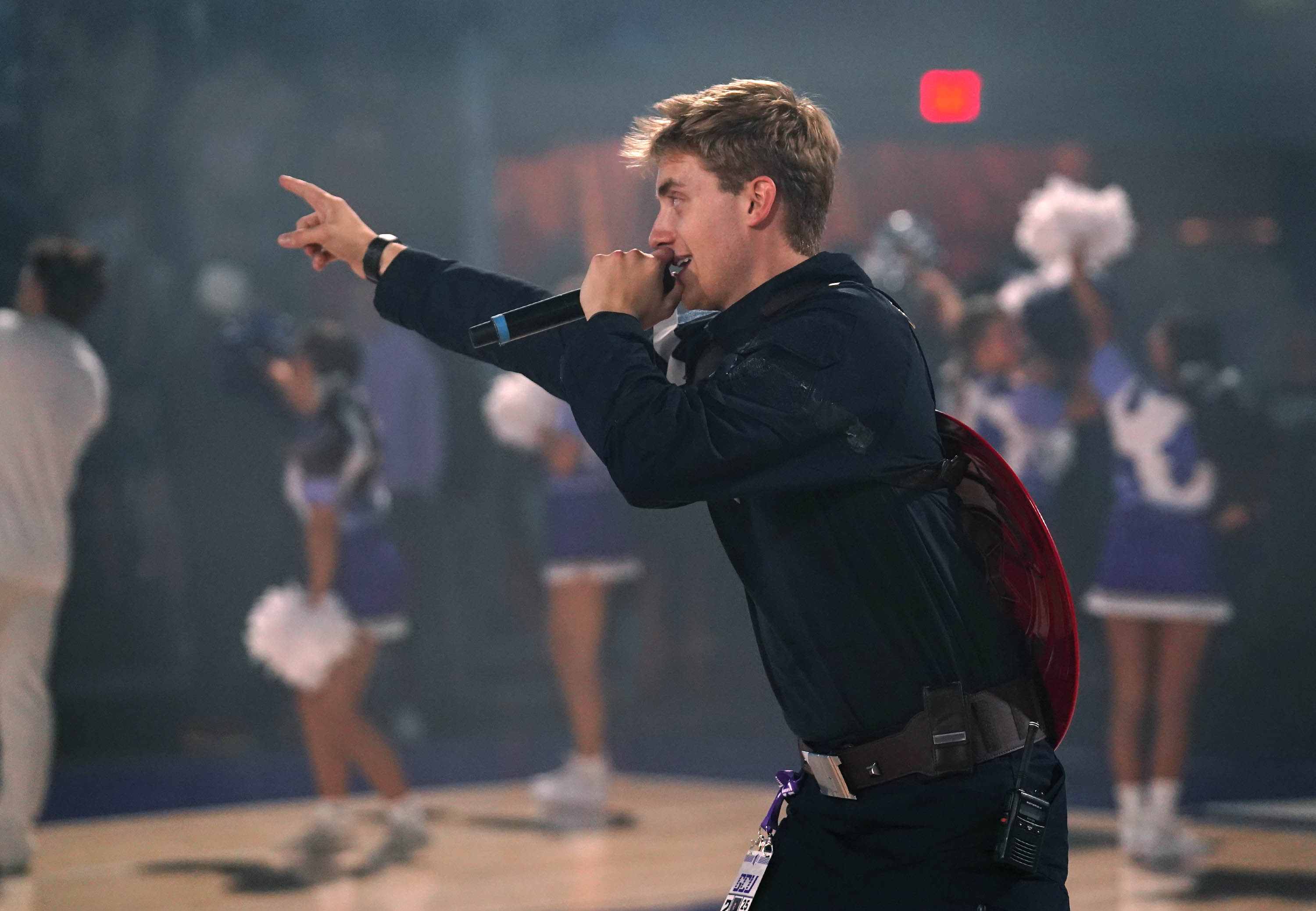 Havocs President Evan McKee calls out participants for a challenge of games during Midnight Madness at Global Credit Union Arena on Oct. 3, 2025 -