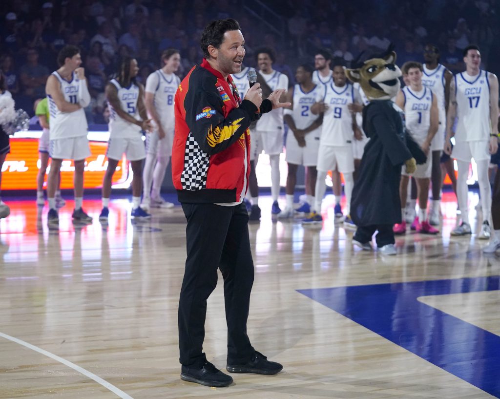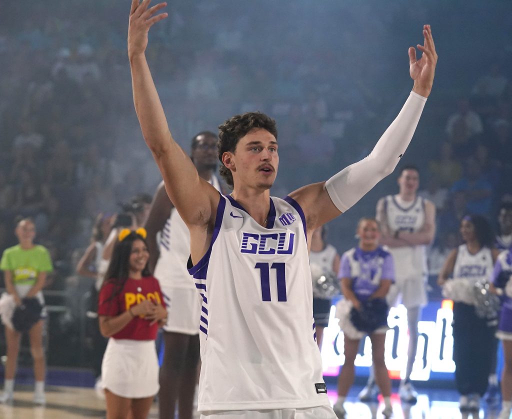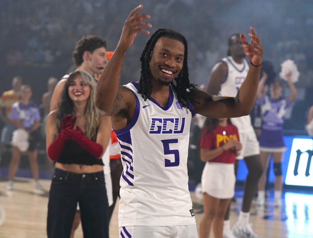 GCU men’s basketball guard Caleb Shaw acknowledges the crowd during Midnight Madness at Global Credit Union Arena on Oct. 3, 2025 -