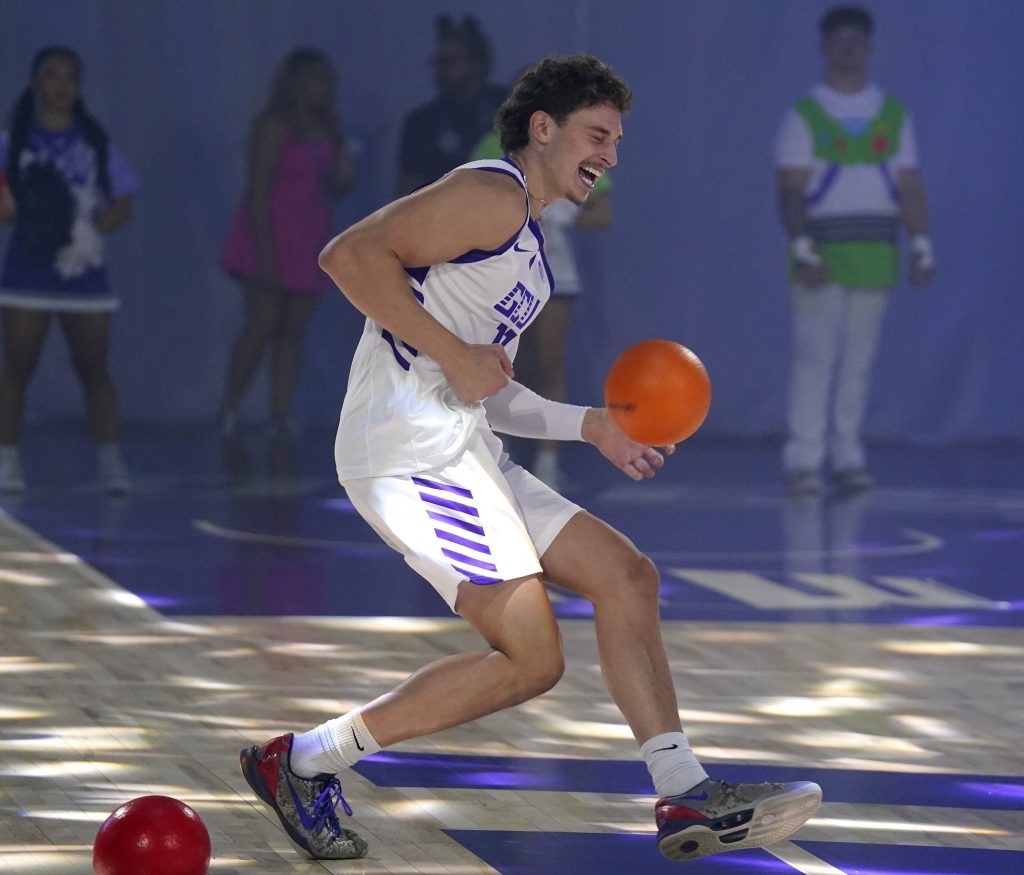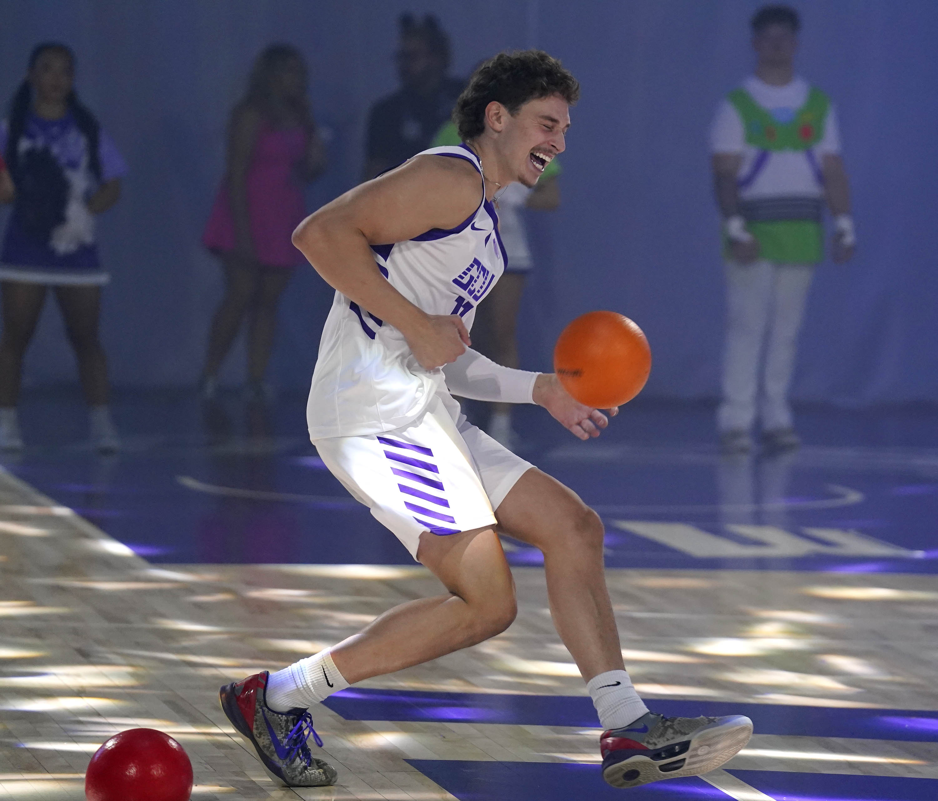 GCU men’s basketball guard Caleb Shaw is eliminated from a game of dodgeball during Midnight Madness at Global Credit Union Arena on Oct. 3, 2025 -