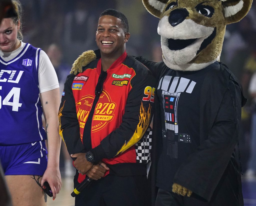 GCU women’s basketball head coach Winston Gandy is welcomed to the herd by Thunder during Midnight Madness at Global Credit Union Arena on Oct. 3, 2025 -
