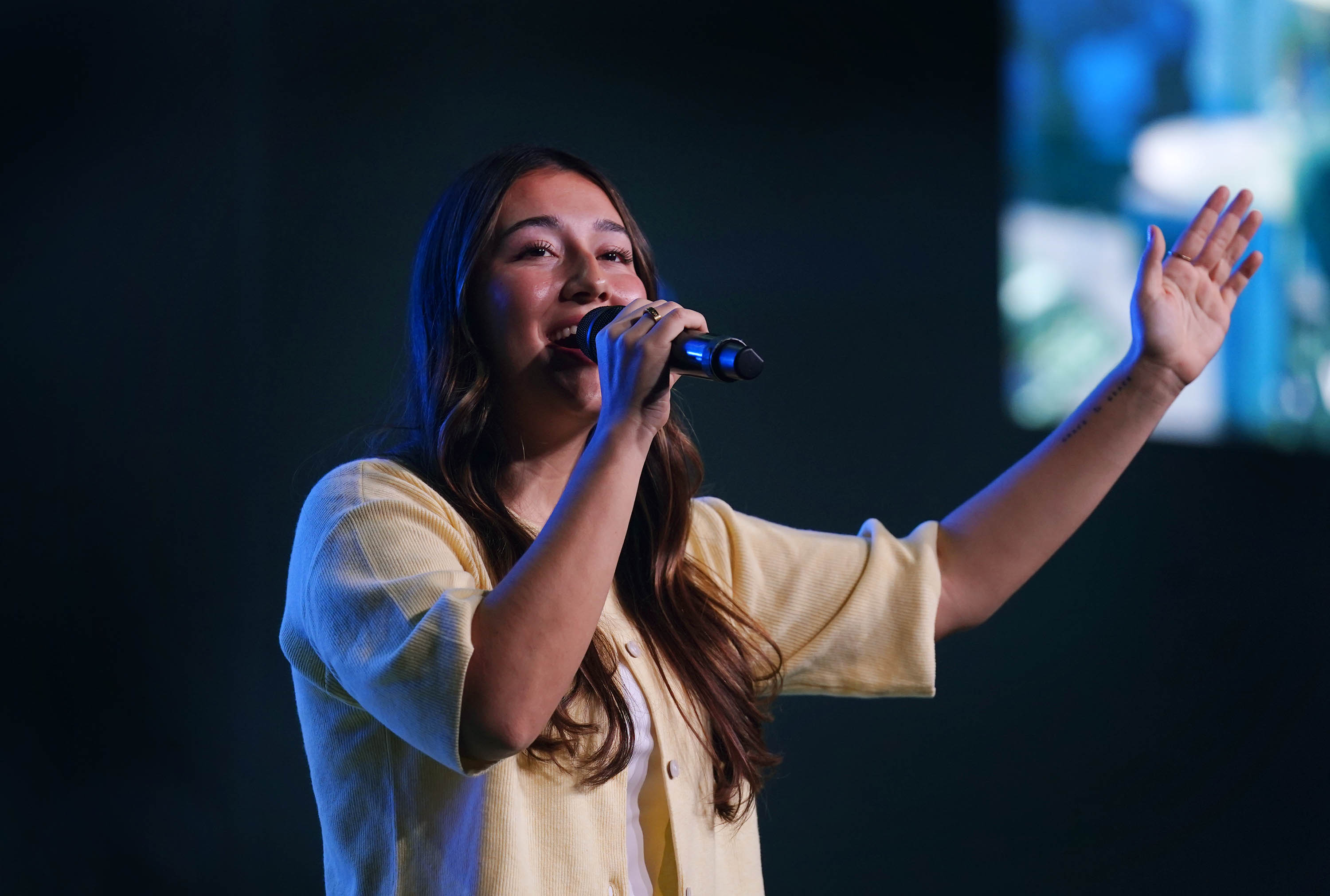 Grace Torok and the Worship team perform with Mack Brock during Monday’s musical Chapel at Global Credit Union Arena on Nov. 10, 2025. -