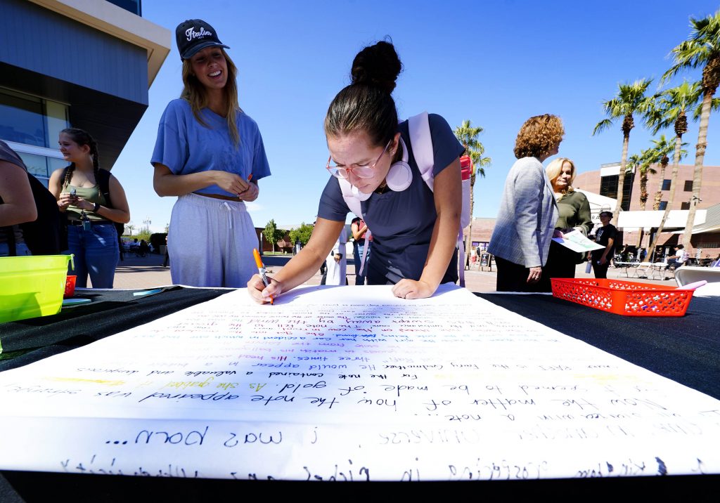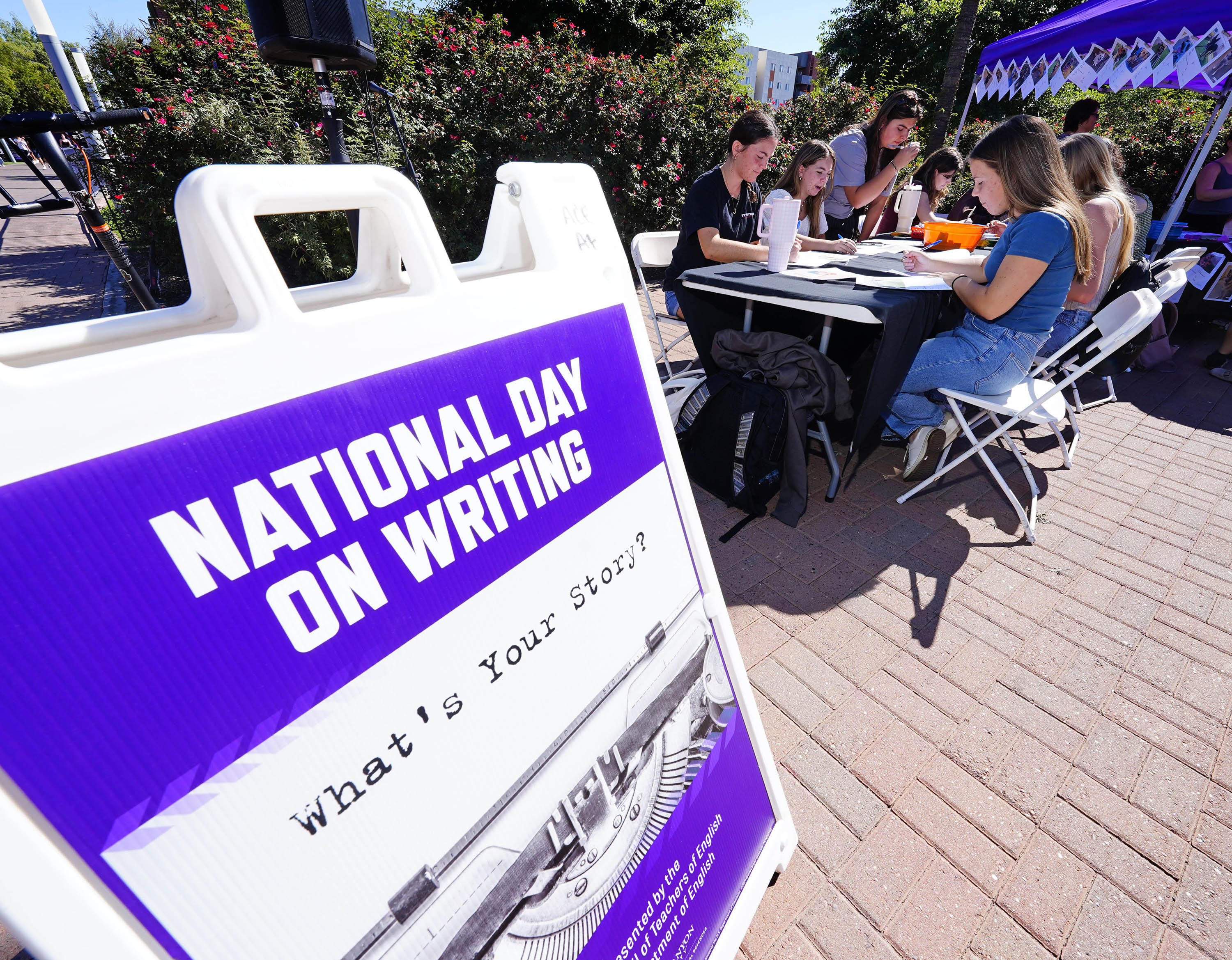 On Tuesday, the English department at Grand Canyon University celebrated National Day on Writing on the Promenade with various prompts to write. Story
