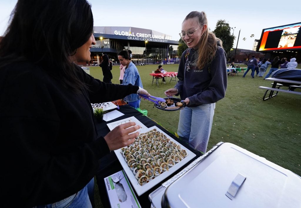 Students are treated to international food, such as sushi, during the Multicultural Office-sponsored Rhythms of the World in celebration of Culture Week. March 5, 2026. -