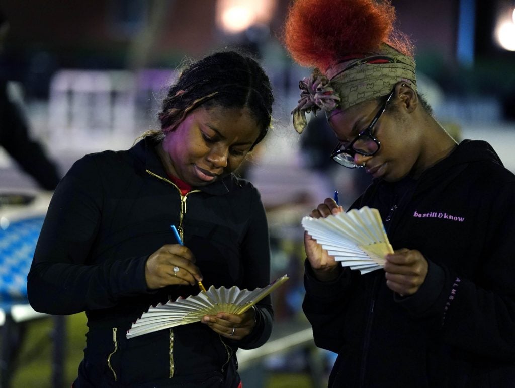 Freshmen Markashia Buggs (left) and Janay Franklin paint paper fans during the Multicultural Office-sponsored Rhythms of the World in celebration of Culture Week. March 5, 2026. -
