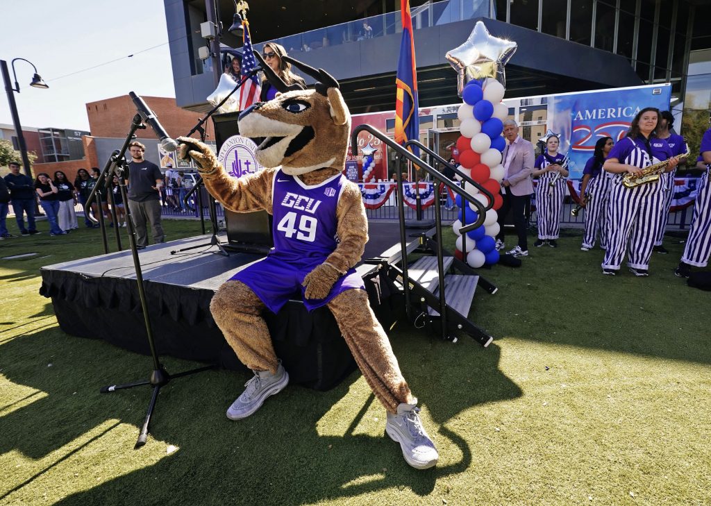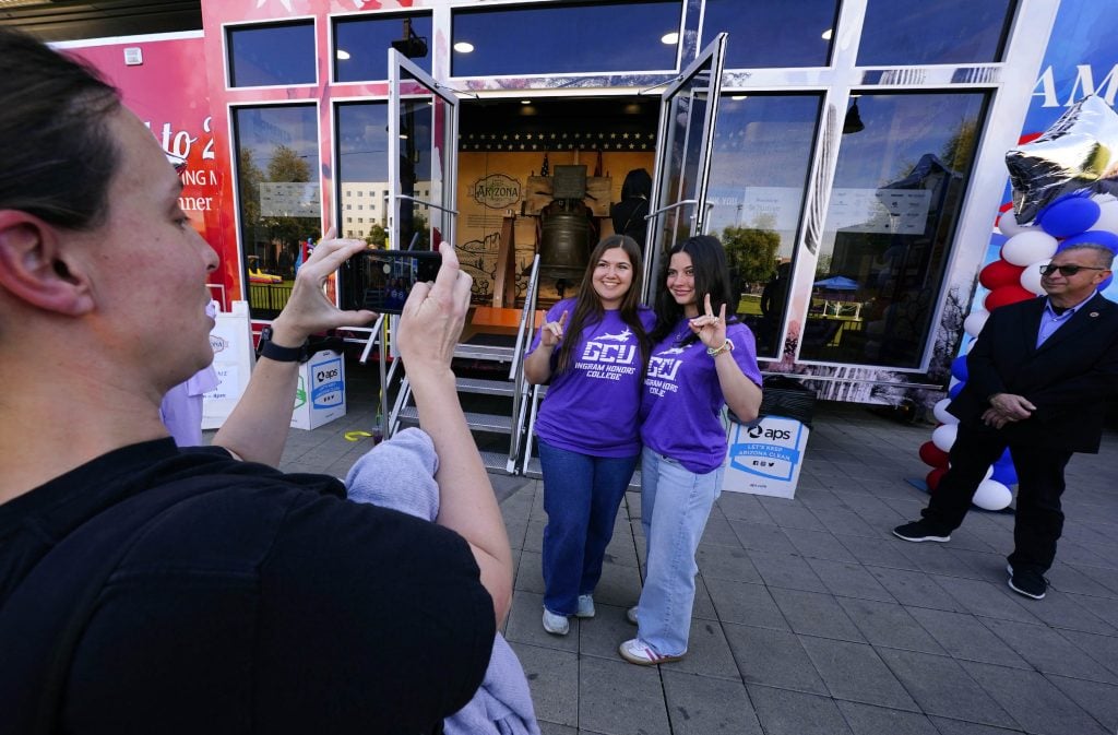 The Arizona America250 Commission brought its Road to 250: Arizona Traveling Museum to Grand Canyon University on Friday. The mobile exhibit, which is making 31 stops in Arizona, features a replica of the Liberty Bell and interactive exhibits on Arizona and U.S. history. A midday ceremony featured guest speakers, GCU officials and GCU's Critical Mass choir, band and cheerleaders. Story