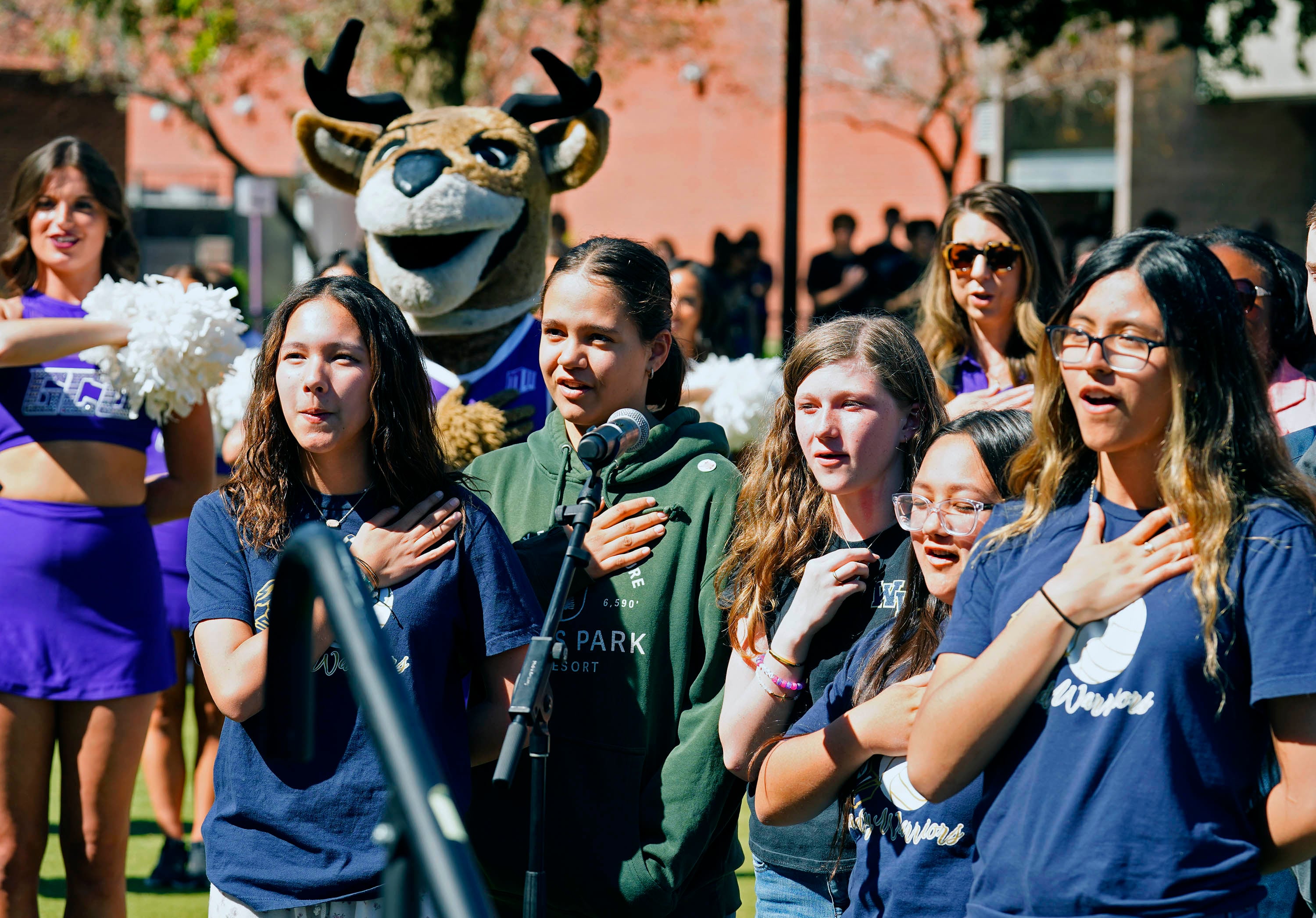 Students from West Valley Christian School lead the pledge of allegiance during a ceremony celebrating the tour stop of the Arizona Traveling Museum on campus in front of Global Credit Union Arena on Feb. 27, 2026. -