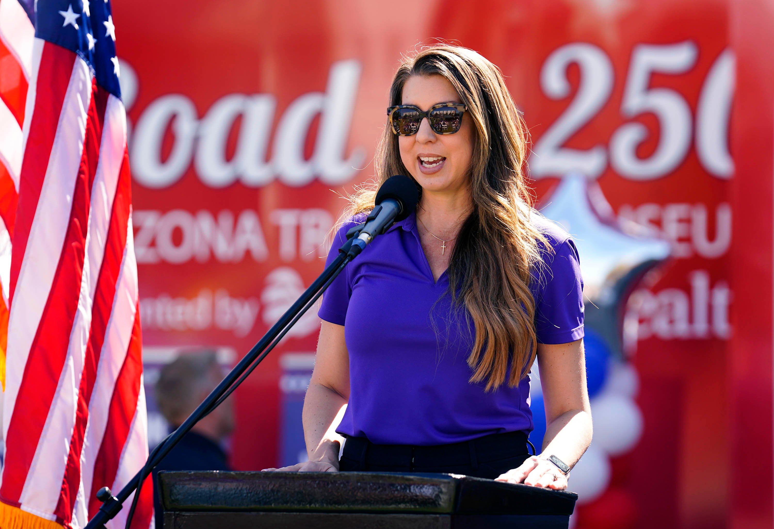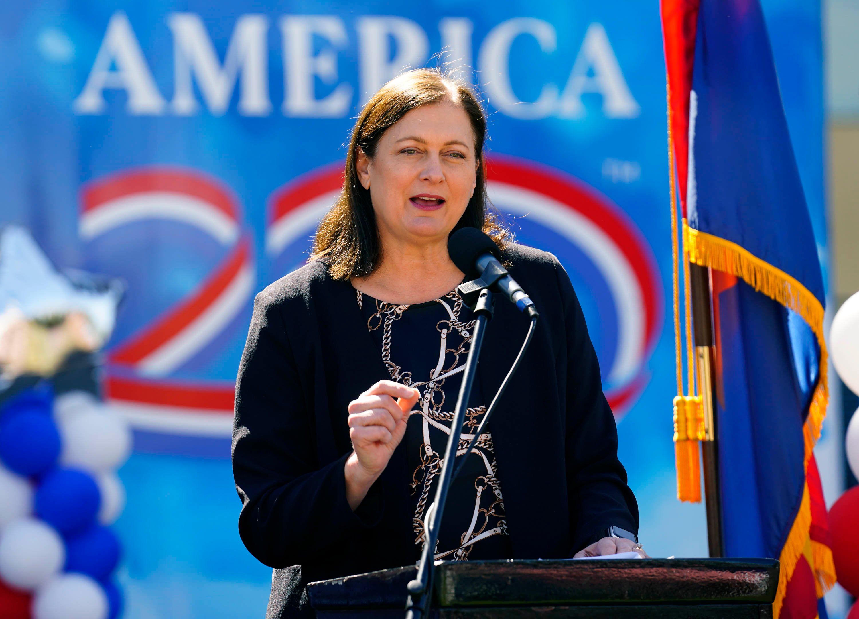 Banner Health CEO Amy Perry speaks during a ceremony celebrating the tour stop of the Arizona Traveling Museum on campus in front of Global Credit Union Arena on Feb. 27, 2026. -