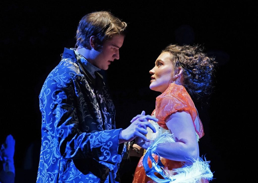 Romeo (Gavin Pierce) and Juliet (Sophie Ford) fall in love in "Romeo and Juliet,” opening at Ethington Theatre. -