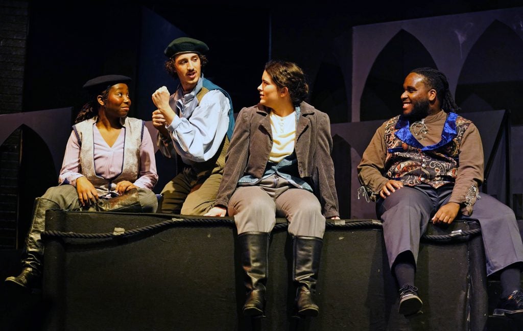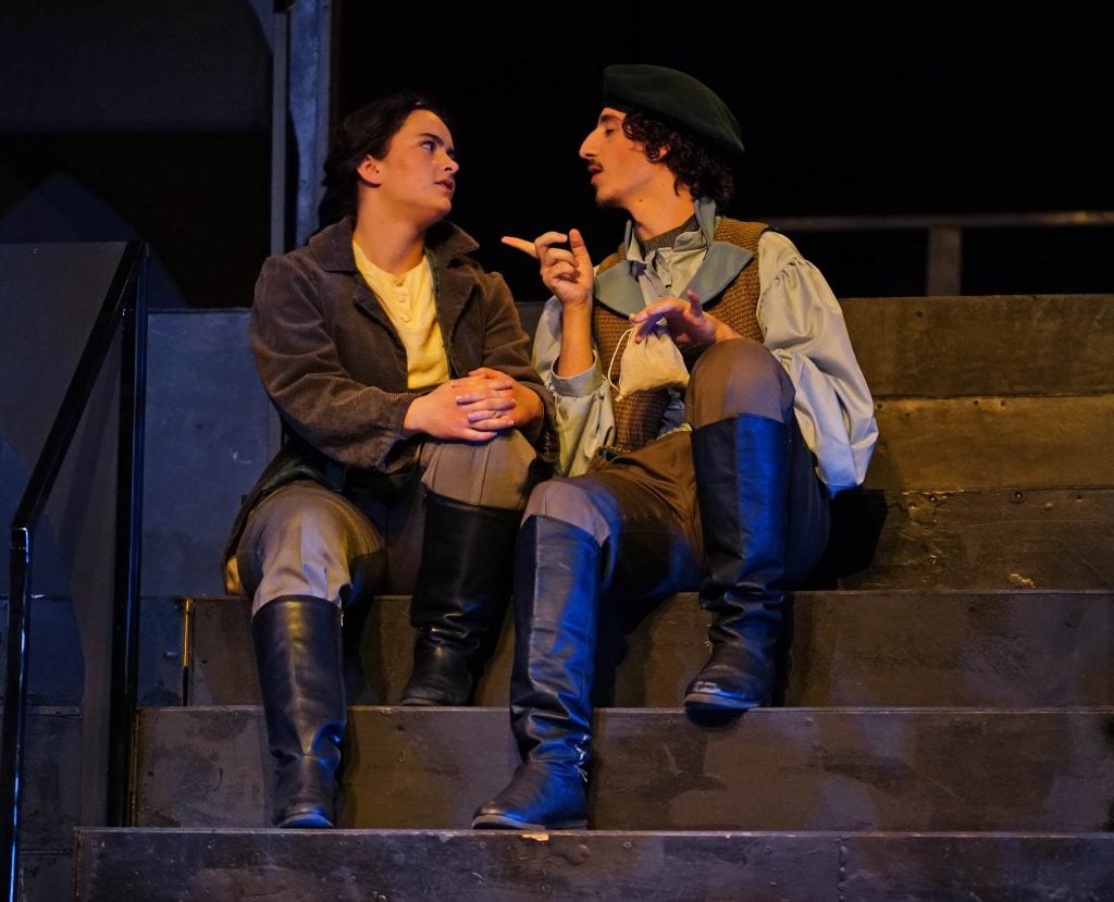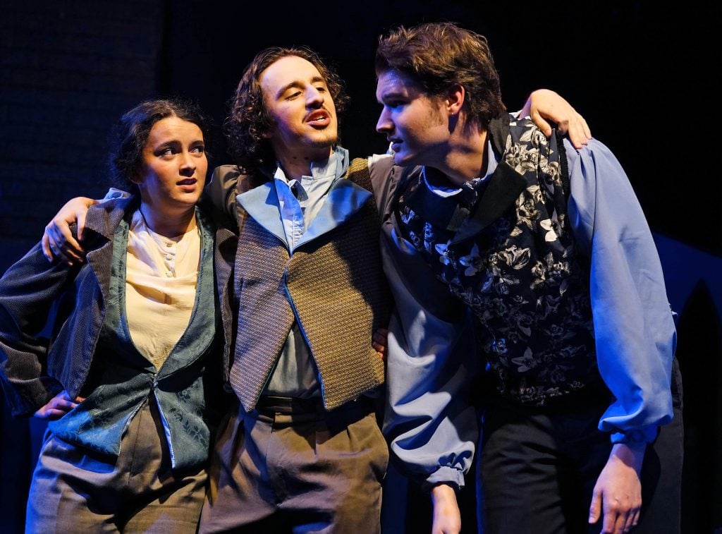From left, Chloe Rose as Benvolio, Anthony Piunno as Mercutio and Gavin Pierce as Romeo in the theatre department's production of “Romeo and Juliet." -