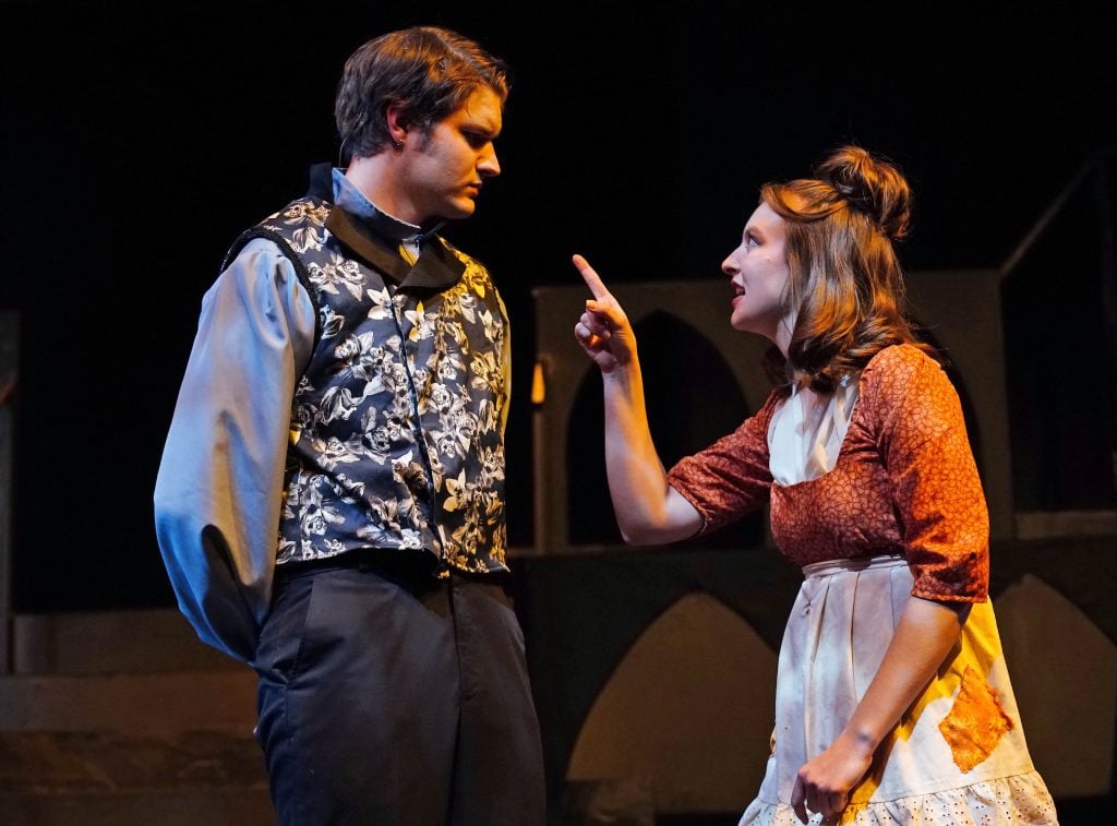Gavin Pierce plays Romeo and Natalie Earley is the nurse in the College of Arts and Media's production of “Romeo and Juliet” at Ethington Theatre. -