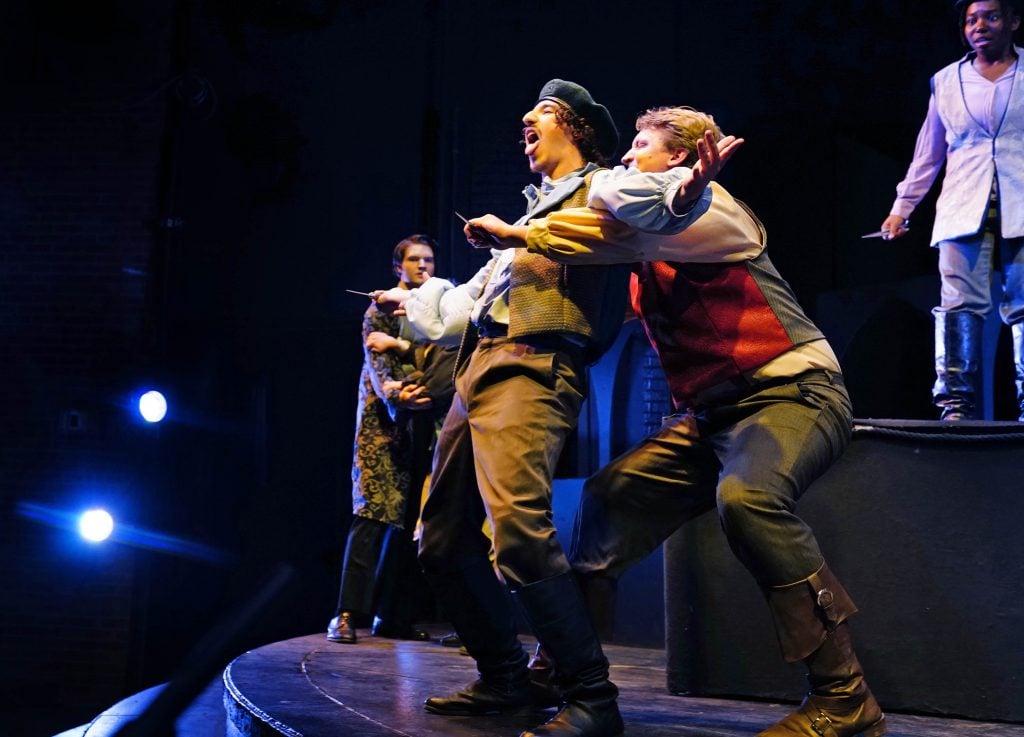 Gavin Pierce portrays Romeo and Ben Sparling is Tybalt in the theatre department’s production of “Romeo and Juliet” at Ethington Theatre. -