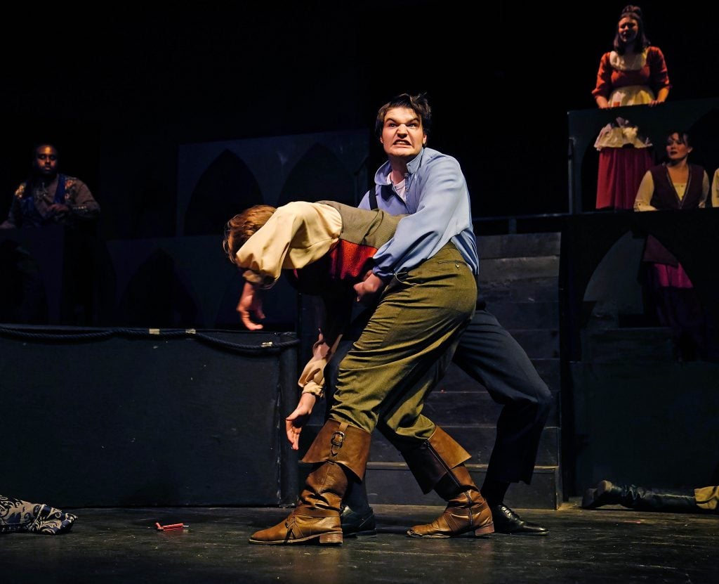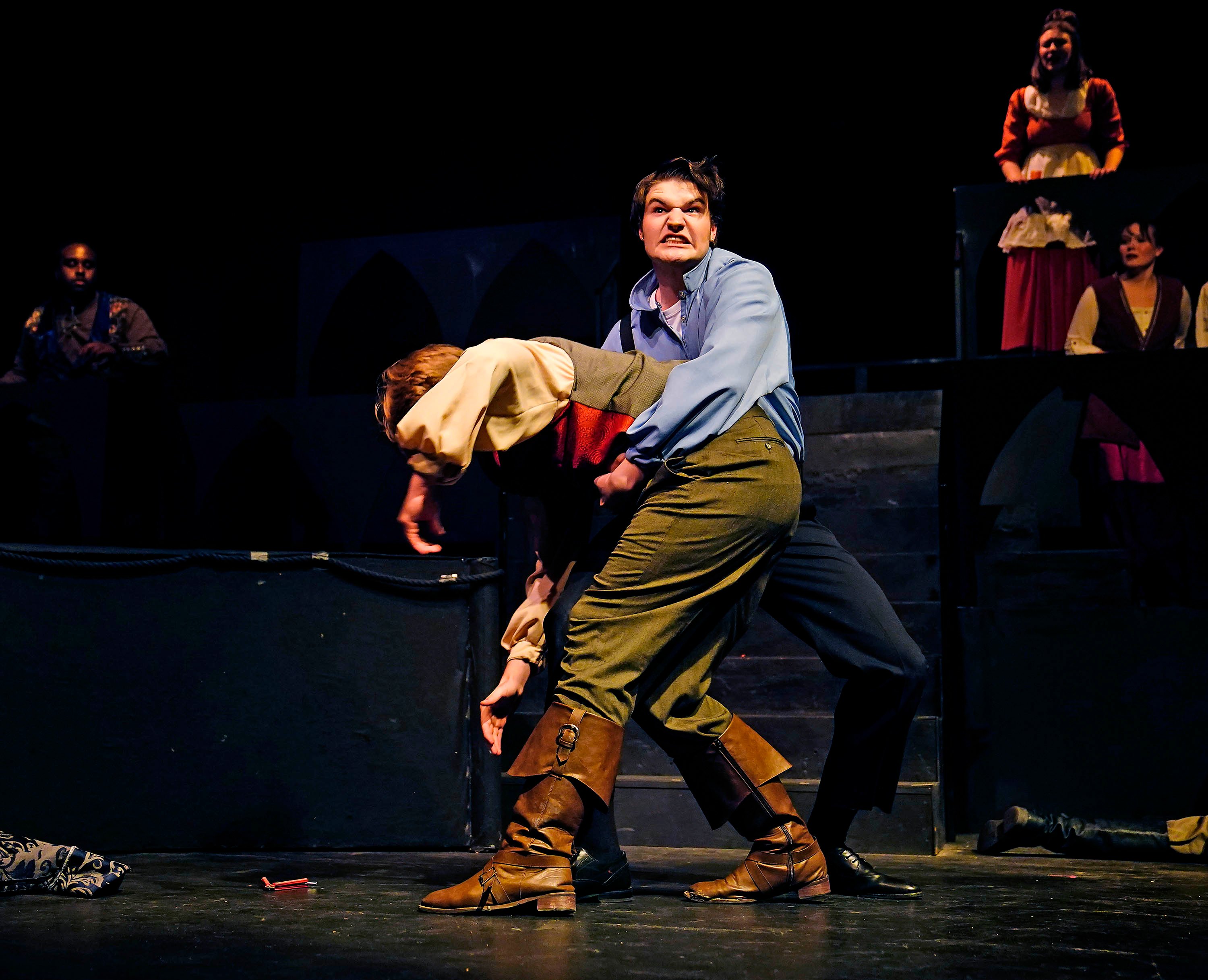 Anthony Piunno stars as Mercutio (left) and Ben Sparling as Tybalt in the theatre department’s production of “Romeo and Juliet” at Ethington Theatre. -