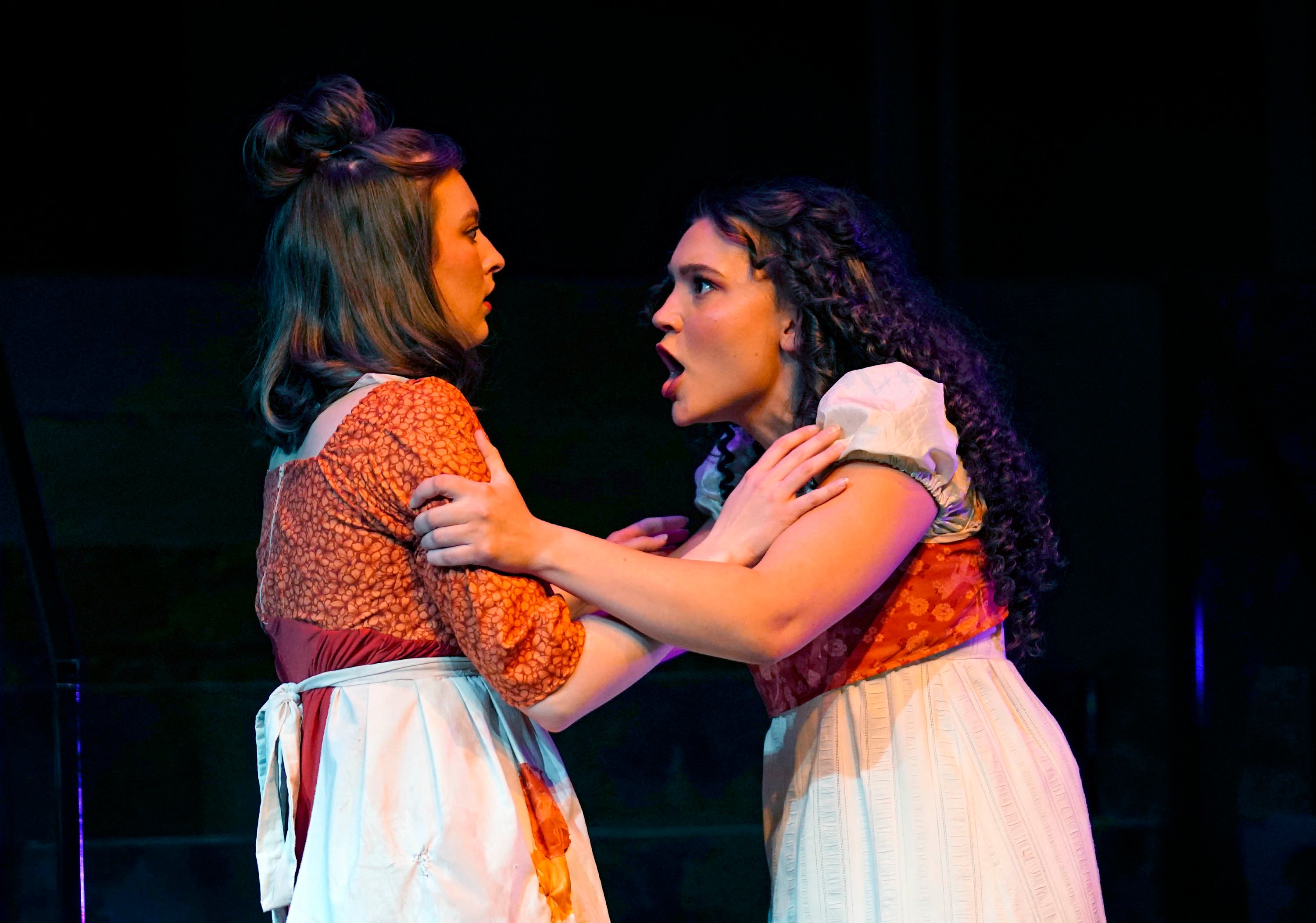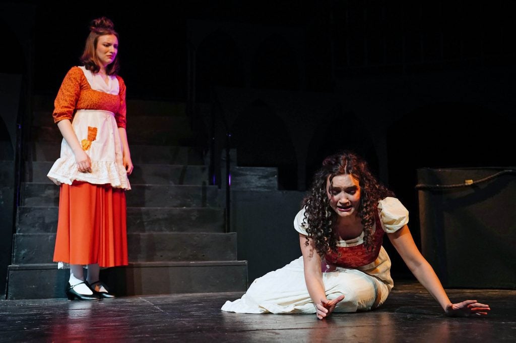 Natalie Earley (left) plays Juliet's nurse and Sophie Ford is Juliet in the theatre department’s production of “Romeo and Juliet” at Ethington Theatre.