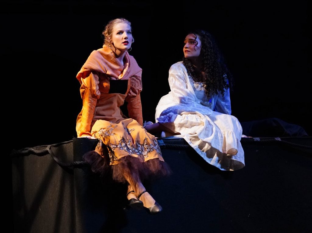 Natalie Earley is the nurse and Sophie Ford is Juliet in the theatre department’s production of “Romeo and Juliet” at Ethington Theatre. -