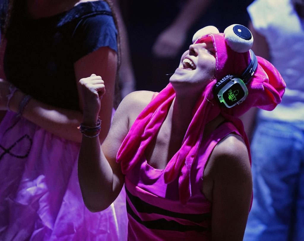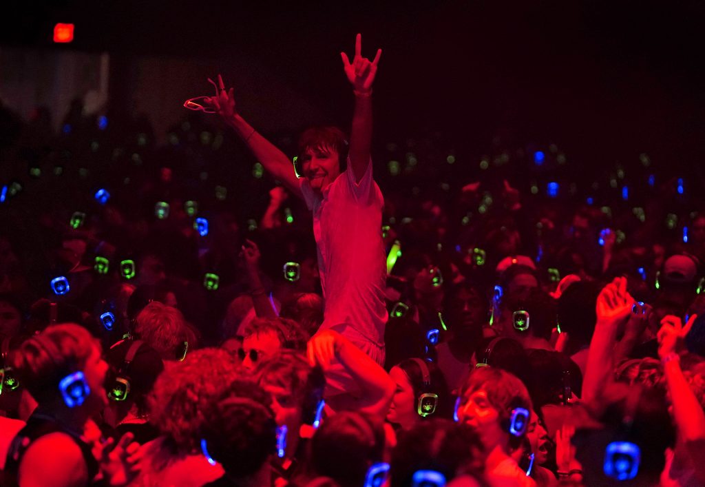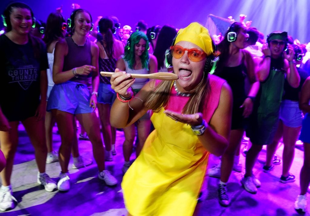 Looks like somebody is getting ready to get served on the dance floor…. DANCE OFF! Silent Disco event at Global Credit Union Arena on Aug. 26, 2025. -