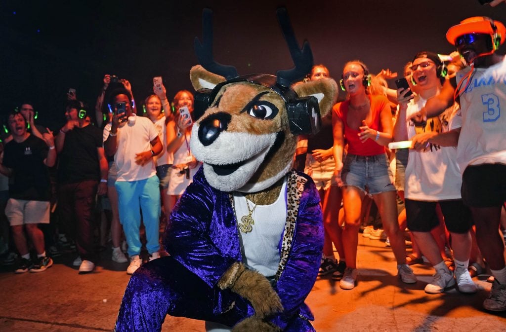 Thunder prepares to show his dance moves during the Canyon Activities Board-sponsored Silent Disco at Global Credit Union Arena on Aug. 26, 2025. -