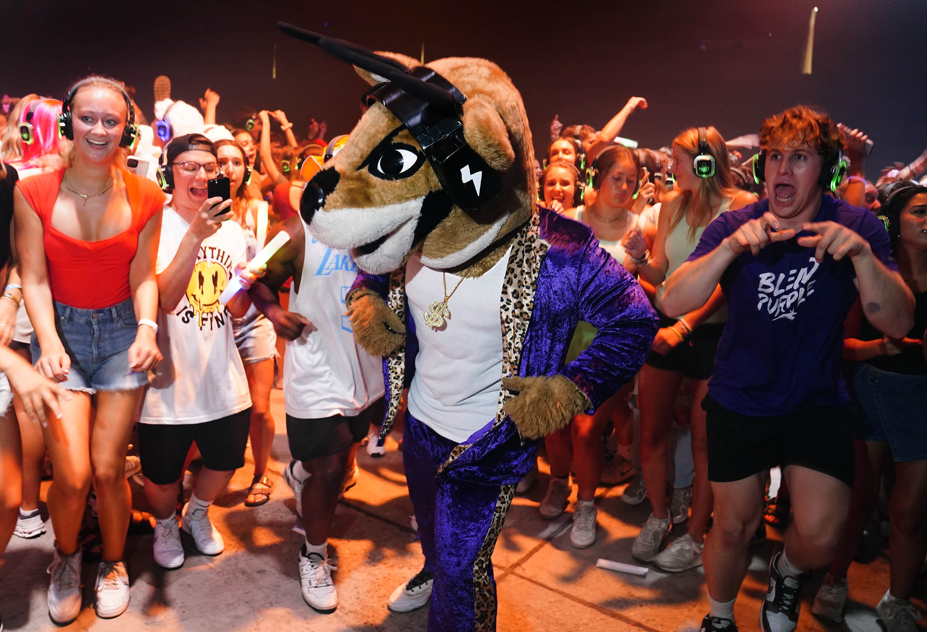 Thunder prepares to show his dance moves during the Canyon Activities Board-sponsored Silent Disco at Global Credit Union Arena on Aug. 26, 2025. -