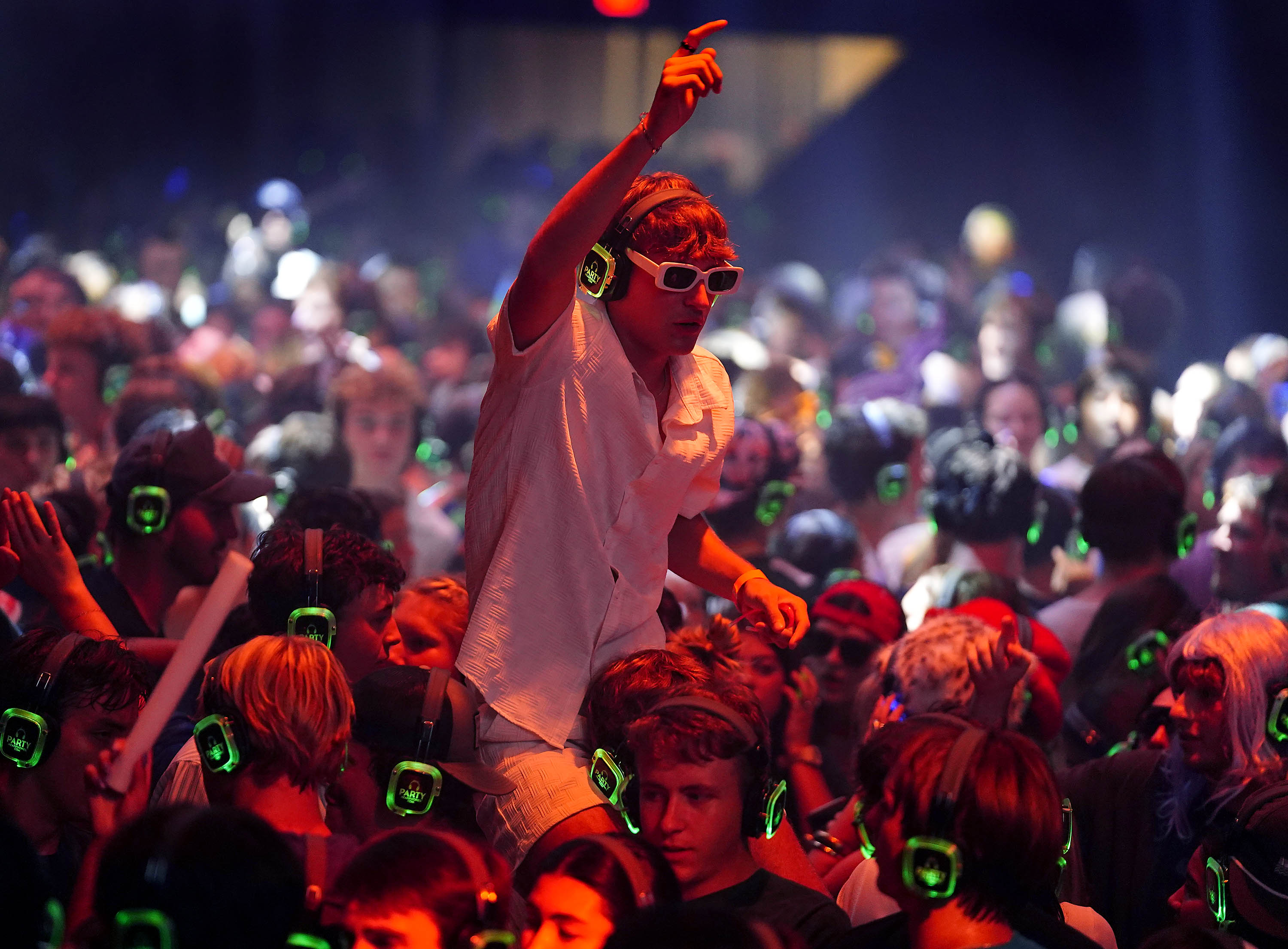 Looks like somebody is getting ready to get served on the dance floor…. DANCE OFF! Silent Disco event at Global Credit Union Arena on Aug. 26, 2025. -