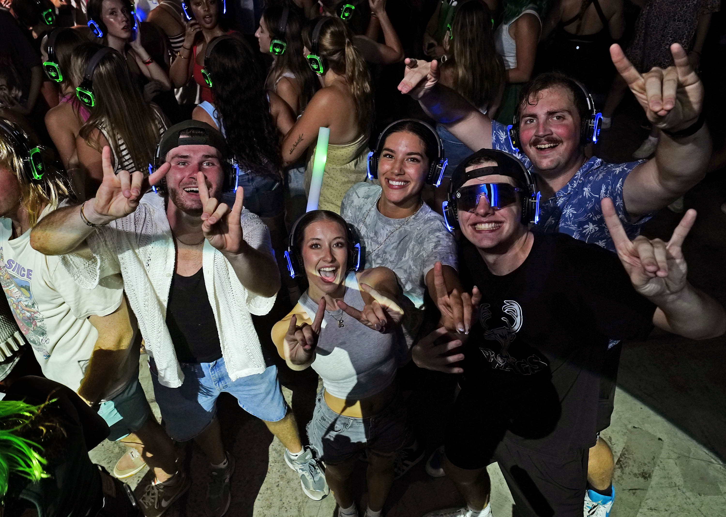 Students flash Lopes-Up as they enjoy the Canyon Activities Board-sponsored Silent Disco at Global Credit Union Arena on Aug. 26, 2025.