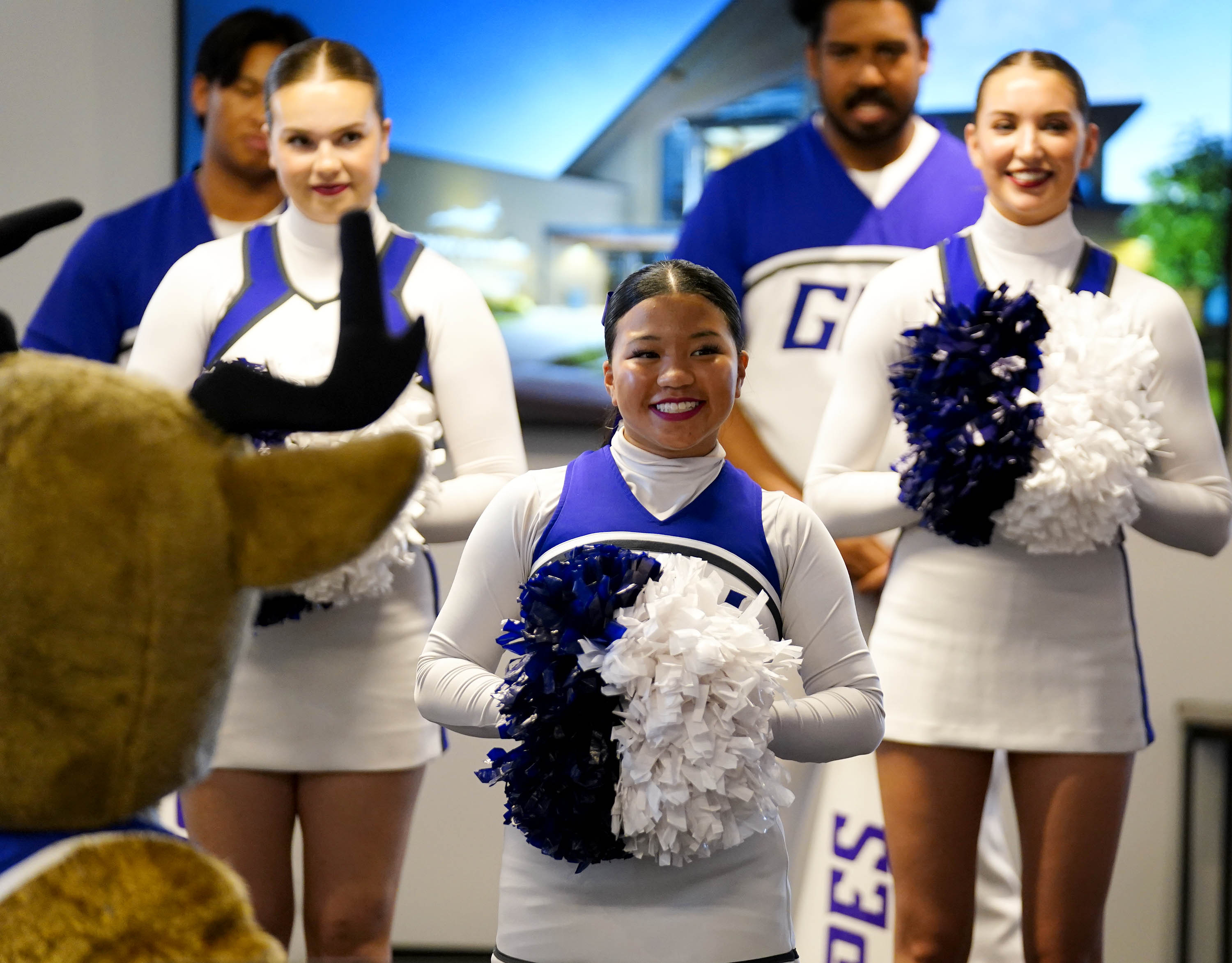 It's been a tradition for the Spirit team to help set the tone of the new academic year by dropping in and performing for GCU President Brian Mueller. On Tuesday, the Thundering Heard Pep Band, Cheer, Dance and Thunder gave Mueller and his executive team a preview of their game day set and the excitement of the year to come.