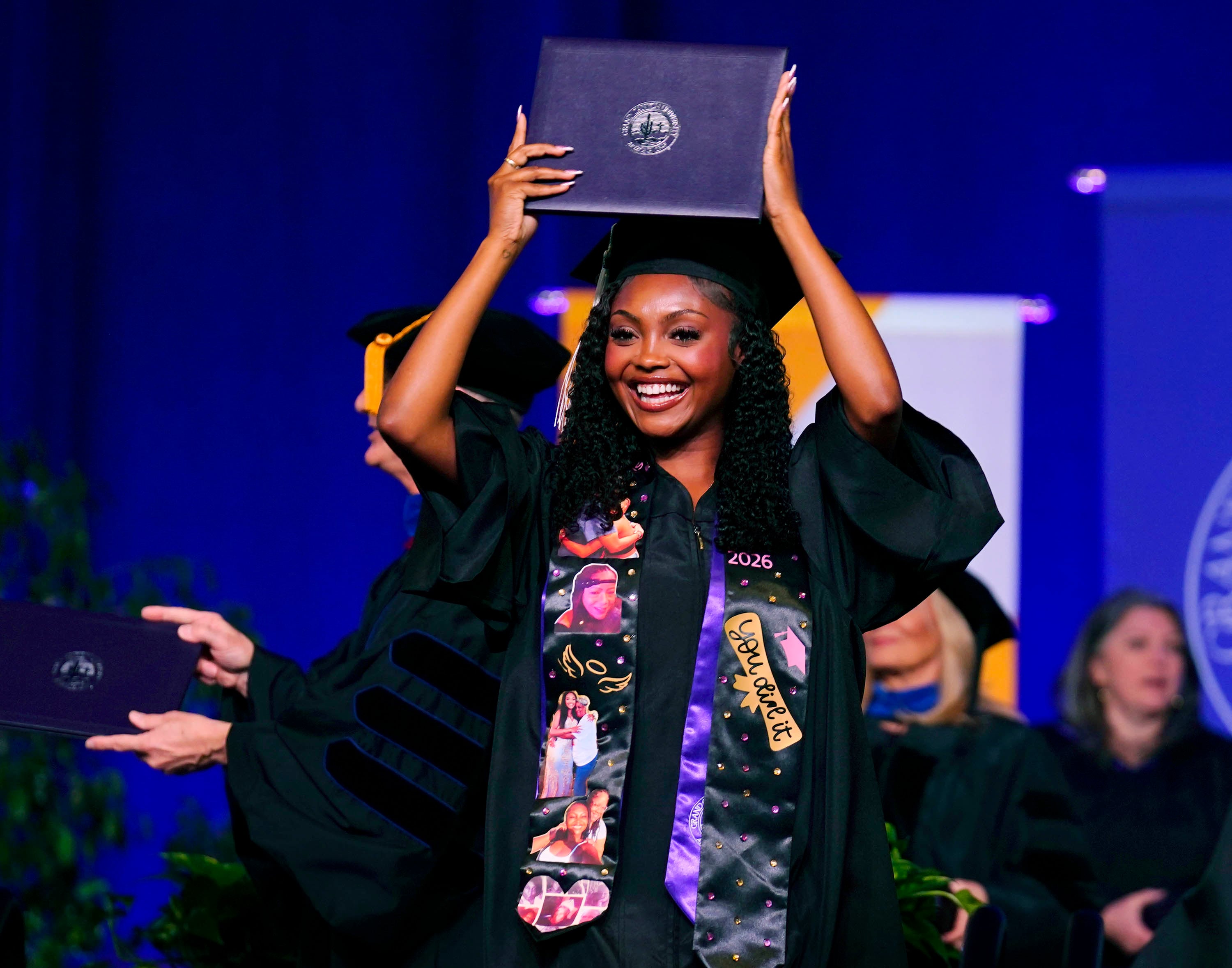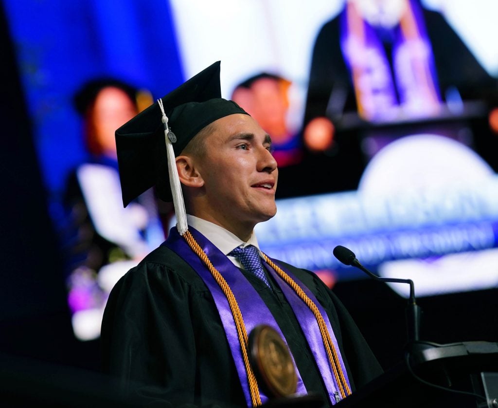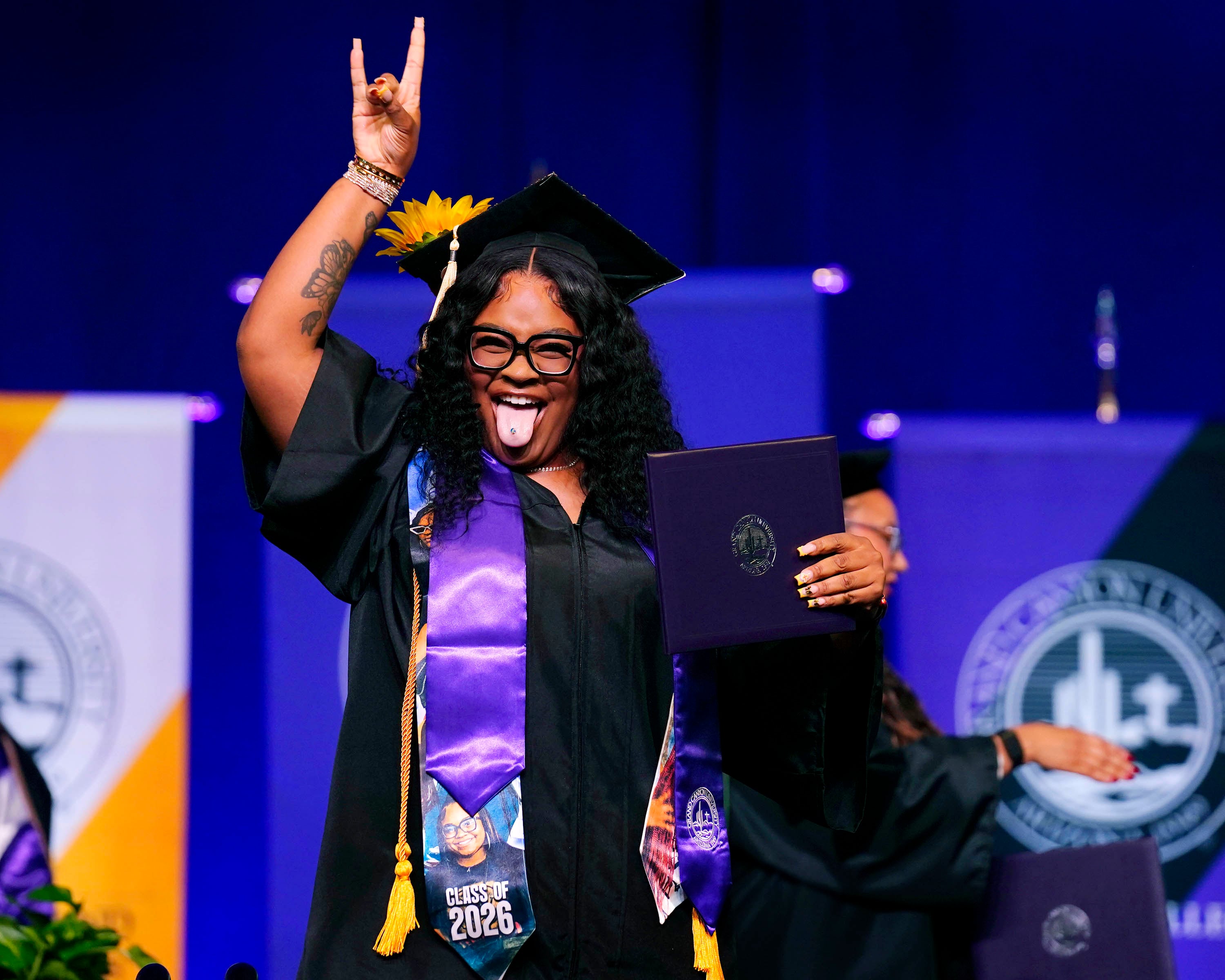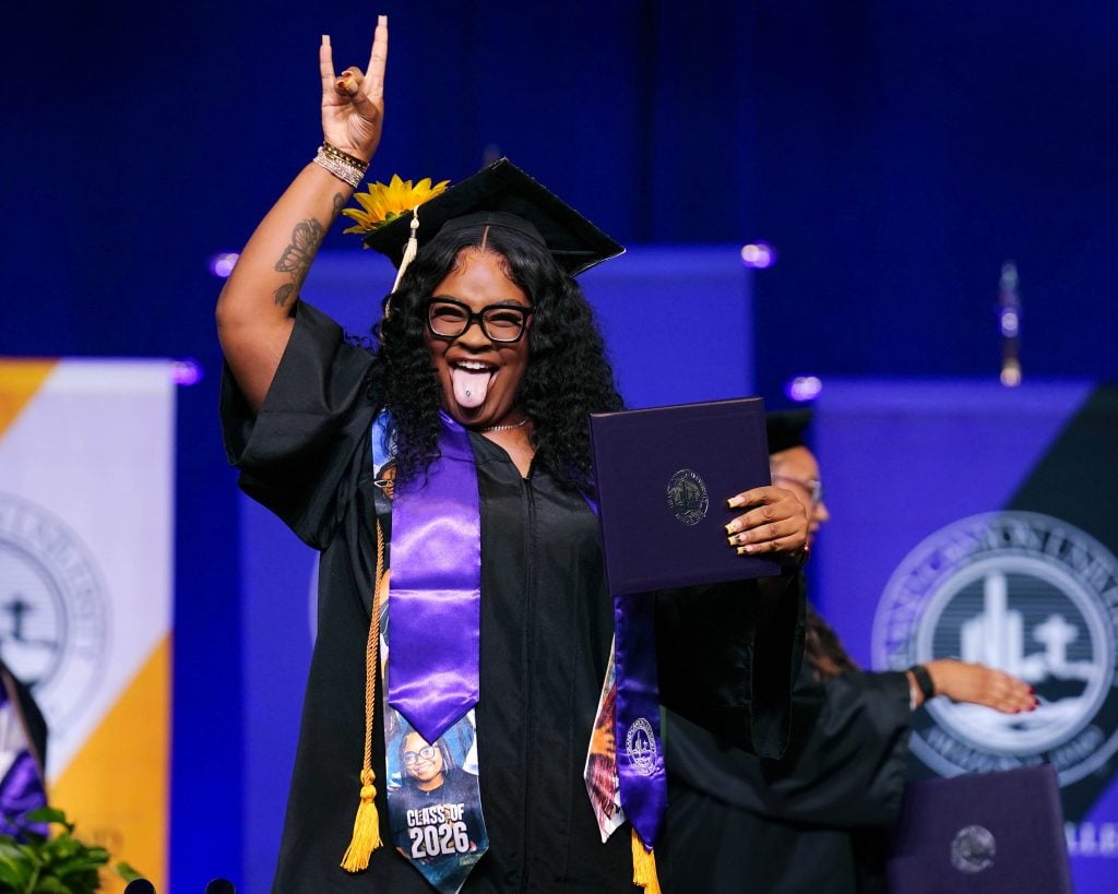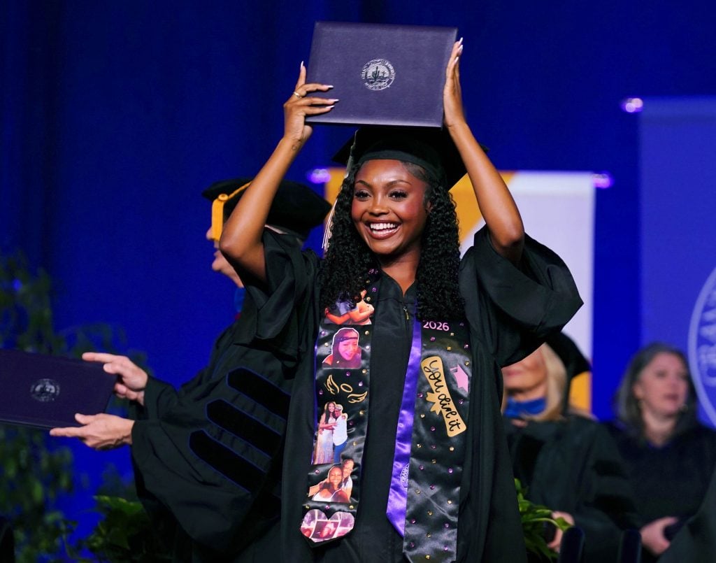 Friday morning commencement ceremony at Global Credit Union Arena on April 24, 2026. -