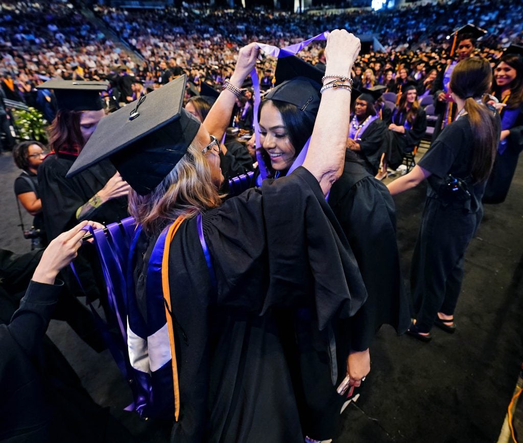 Students in the College of Nursing and Health Care Professions were honored at the Thursday afternoon commencement ceremony in Global Credit Union Arena. Livestream