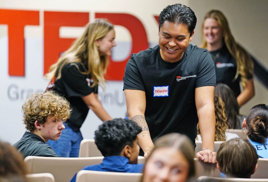 TEDxGCU finance associate Brandon Susi helps students with a topic for their TED talk during the TEDx Catalyst event at Joshua North. -
