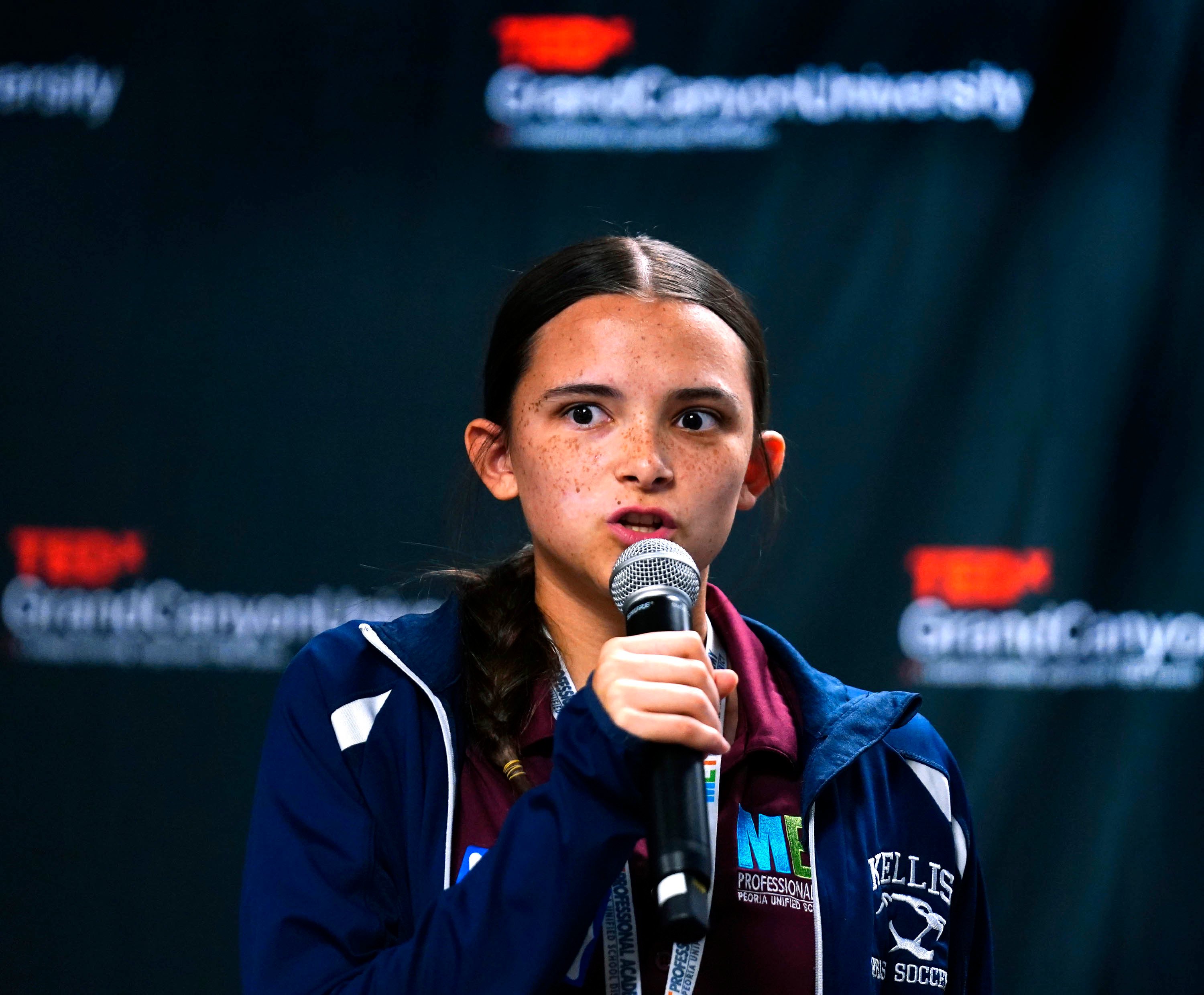 North Valley Christian Academy student Adyson Underwood delivers her team’s TED talk during the TEDx Catalyst event. -