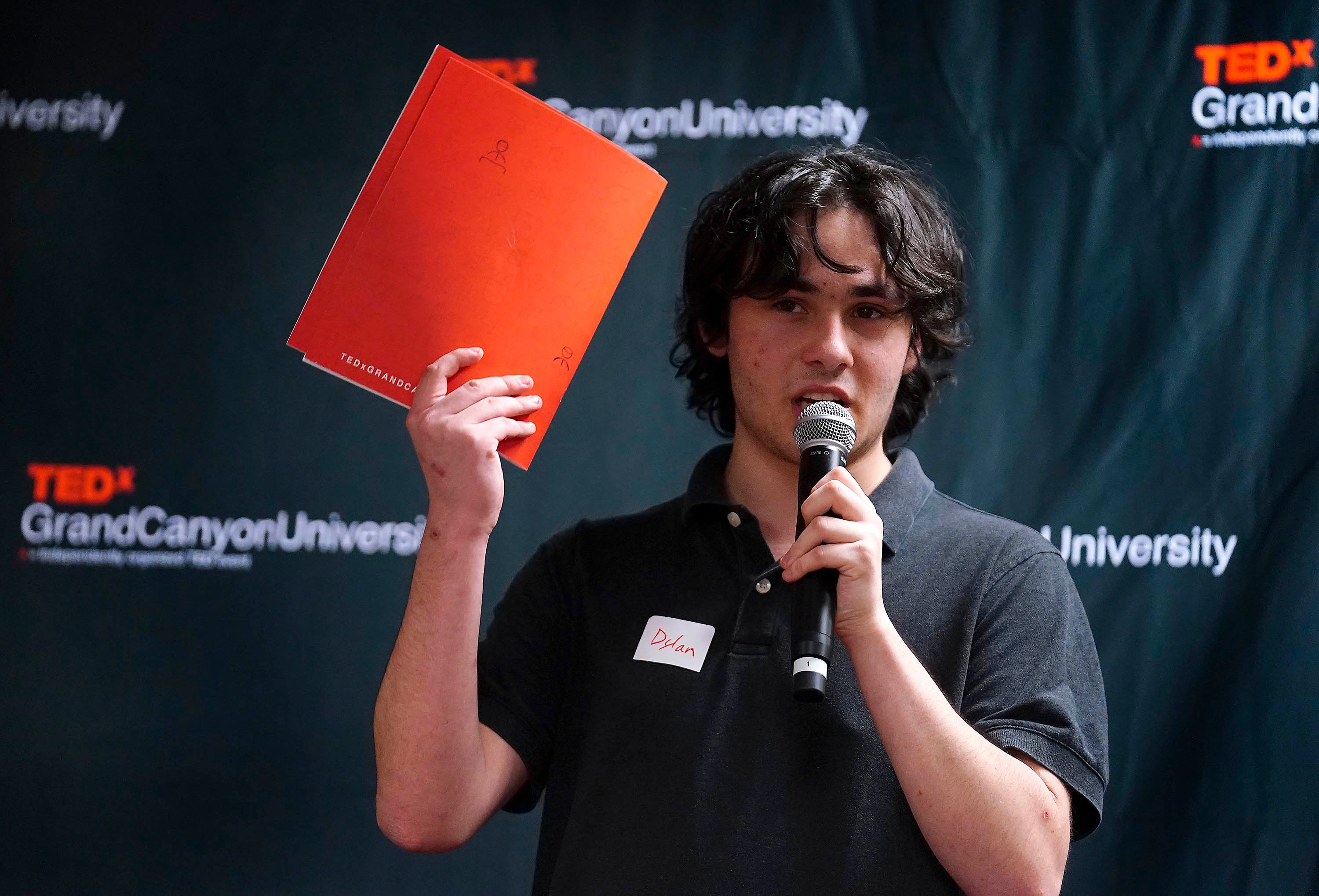 TEDxGCU co-director of operations Owen Parker explains the parameters of a TED talk during the TEDx Catalyst event at Joshua North. -