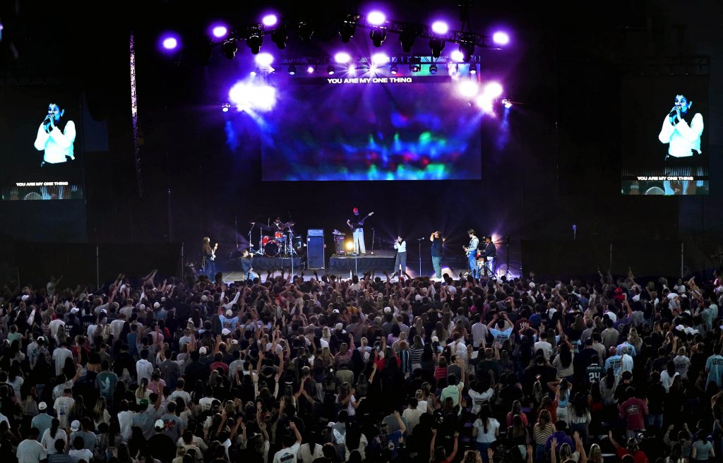 The UPPERROOM worship band performs during UniteUs GCU at Global Credit Union Arena on Oct. 21, 2025. -