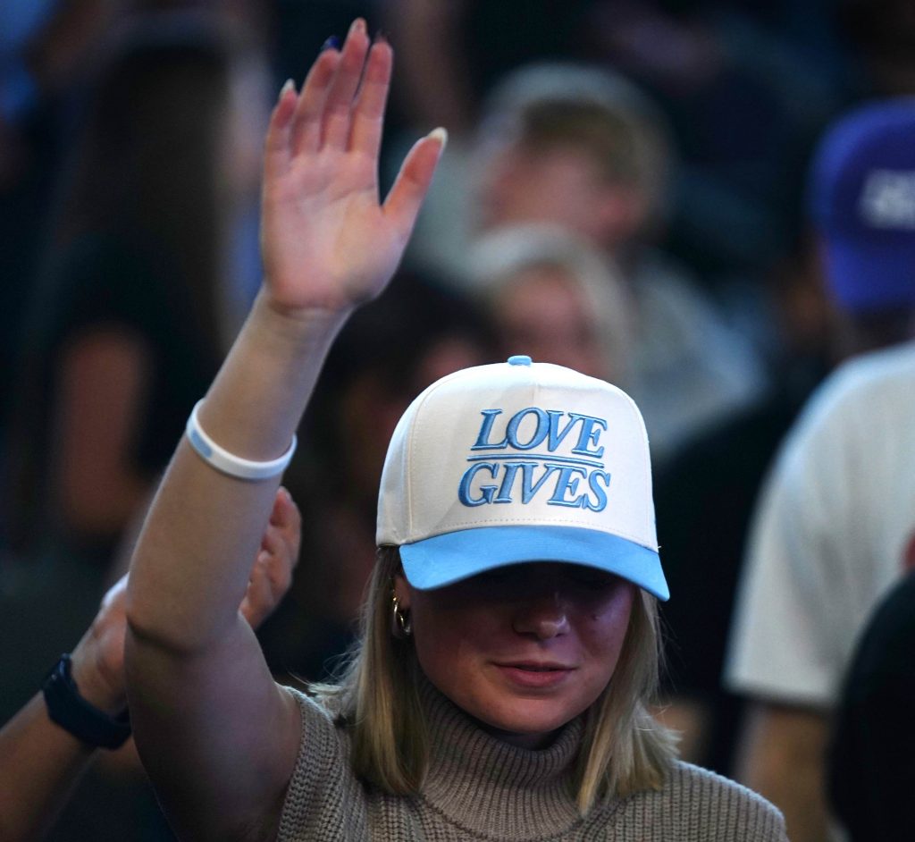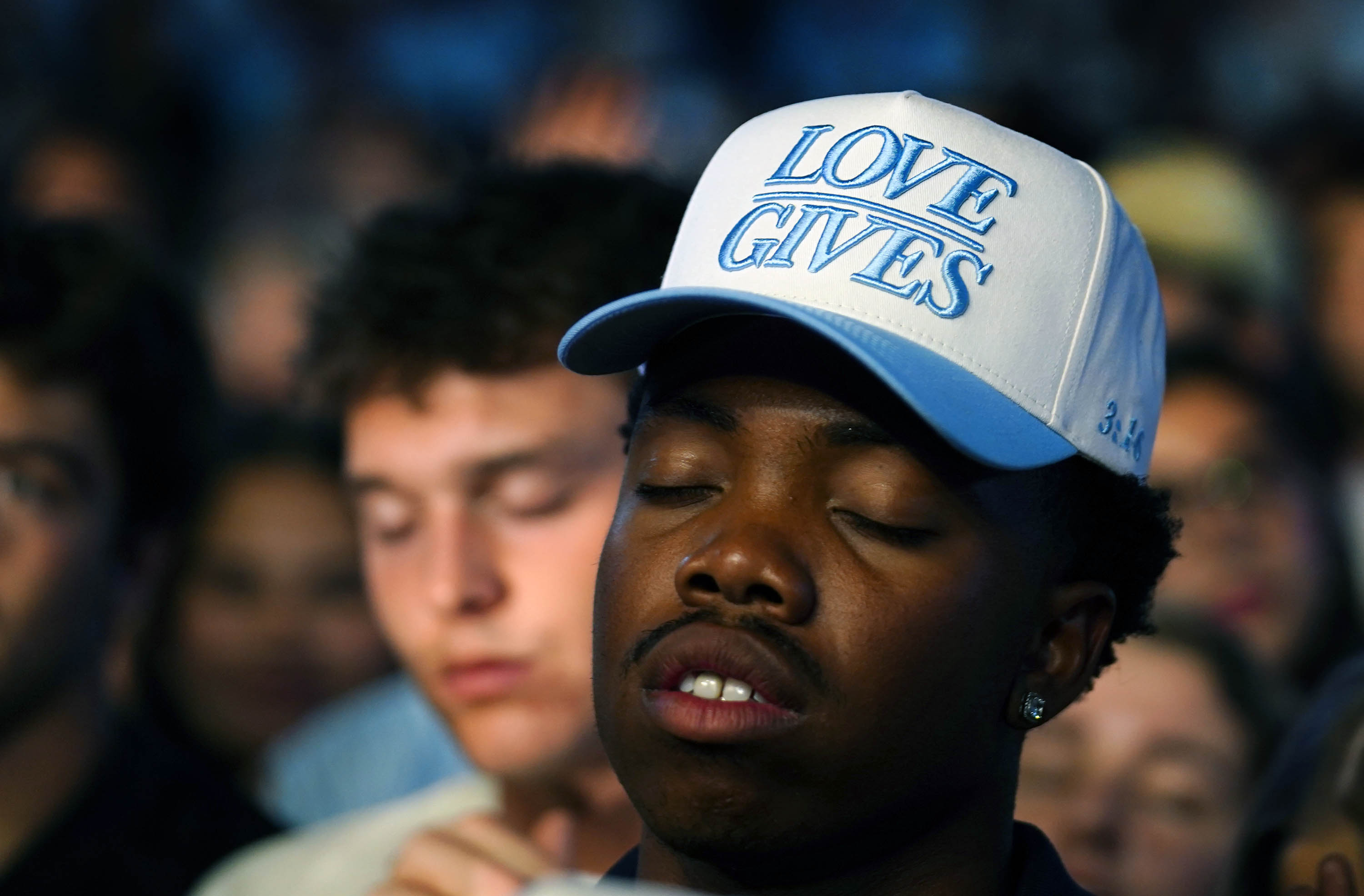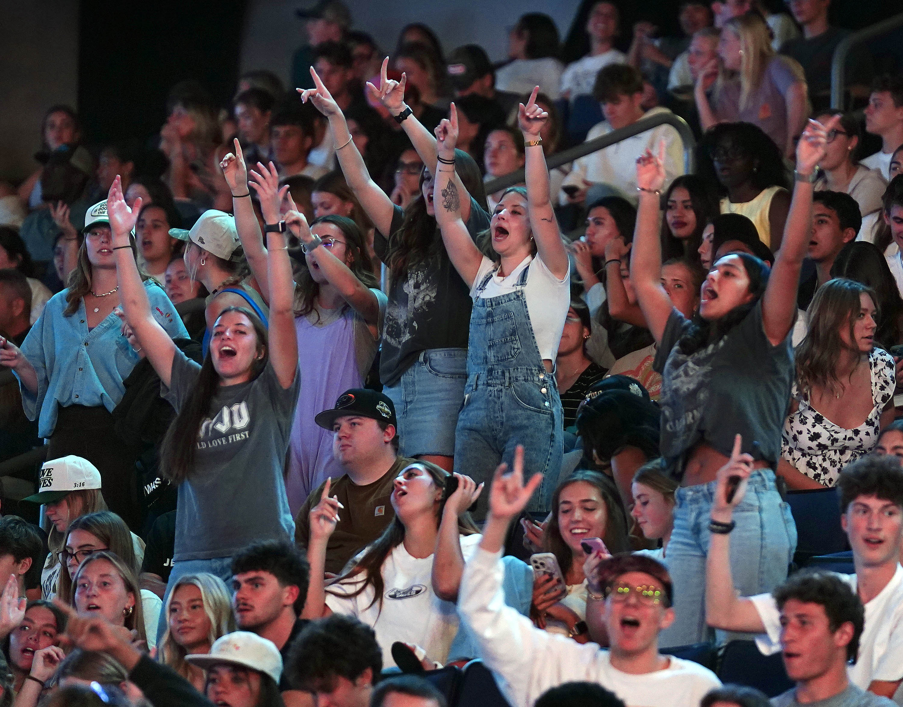 Students give praise during UniteUs GCU at Global Credit Union Arena on Oct. 21, 2025. -