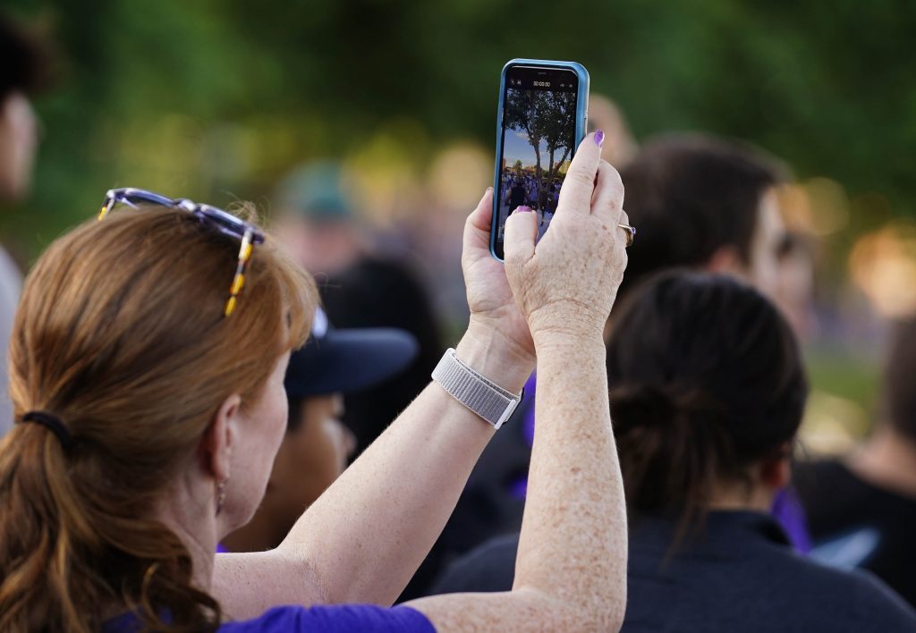 A family member takes a photo during an event at Family Weekend on Oct. 11, 2025. -