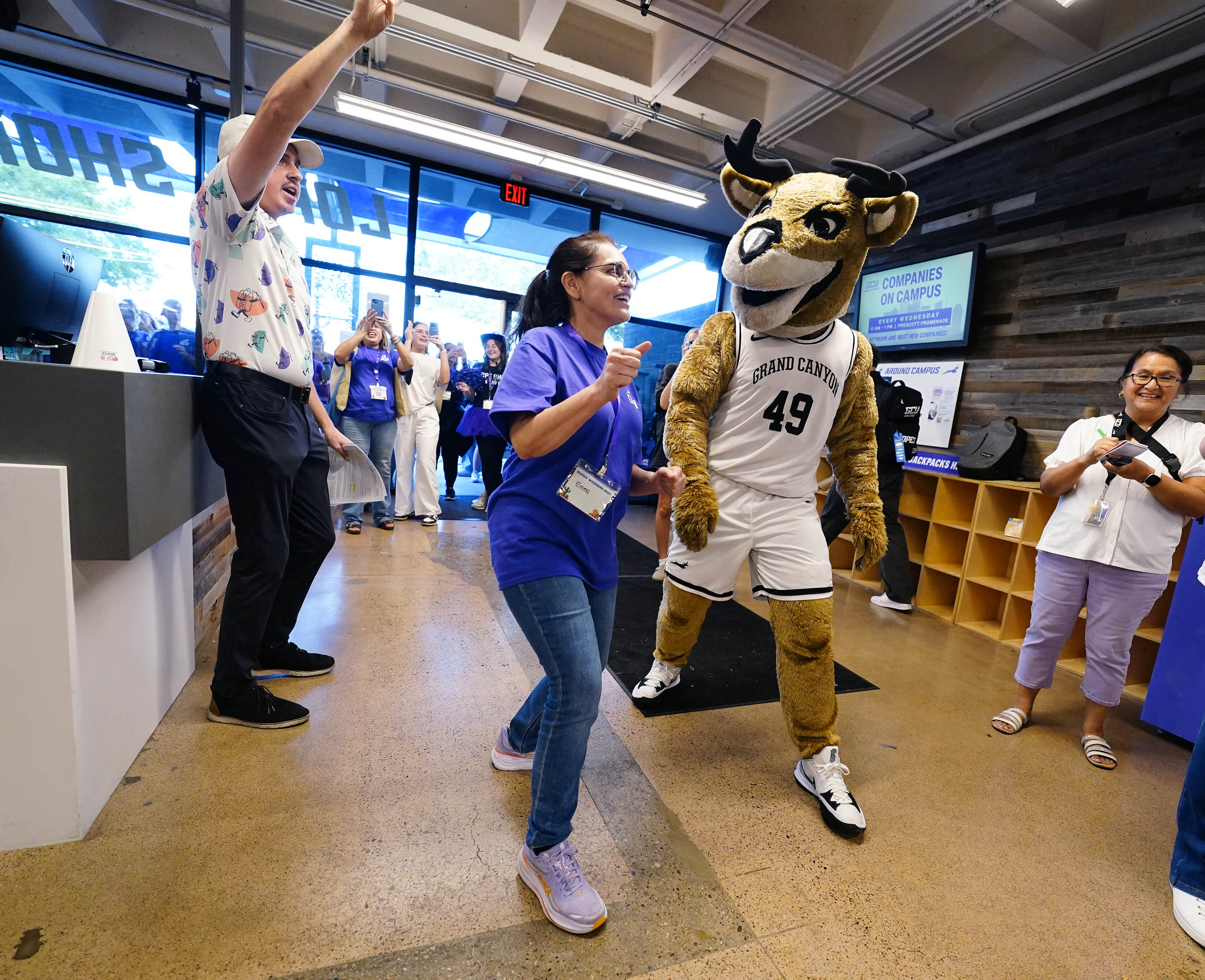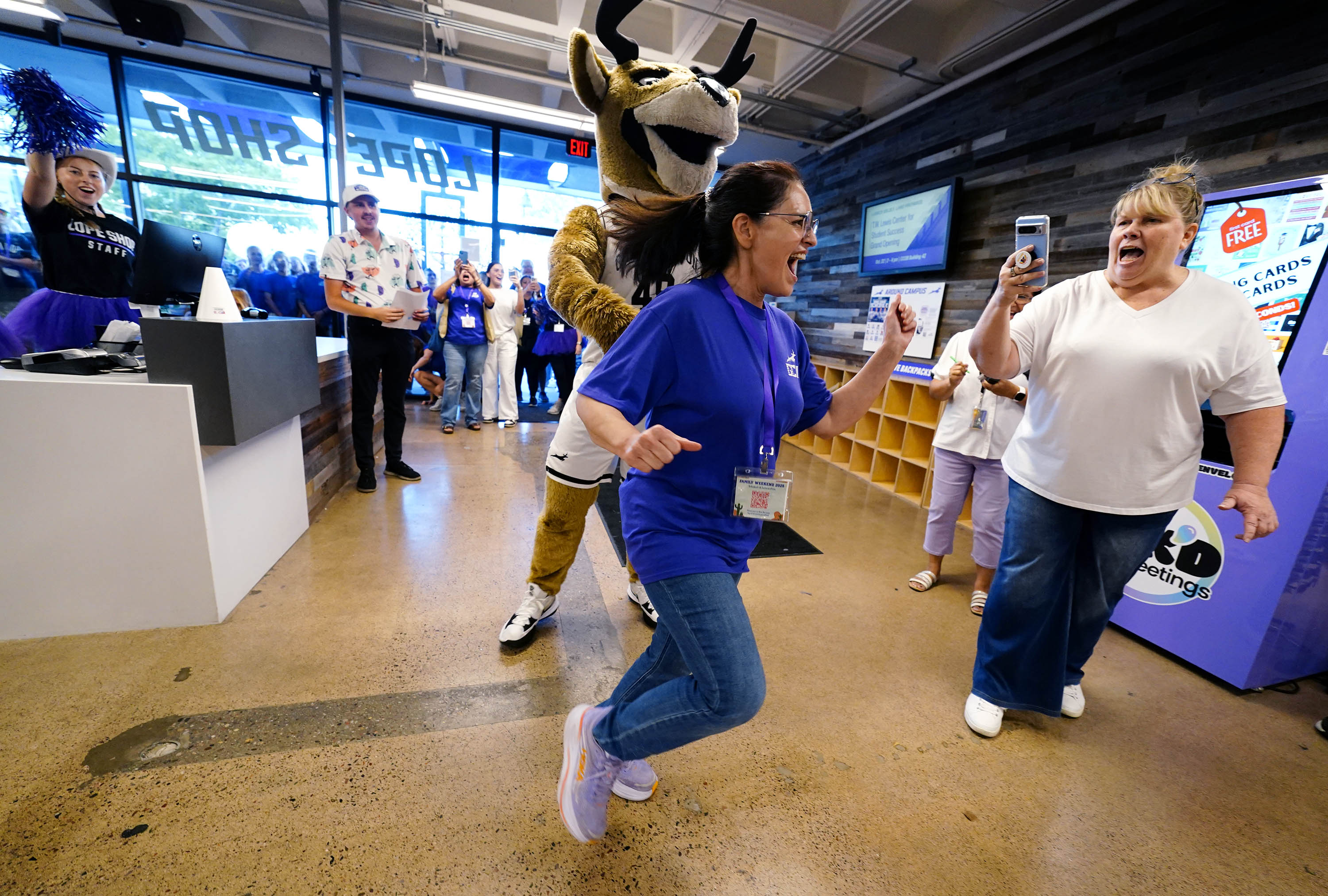 Thunder dances with a Lope Shop employee during Family Weekend on Oct. 11, 2025. -
