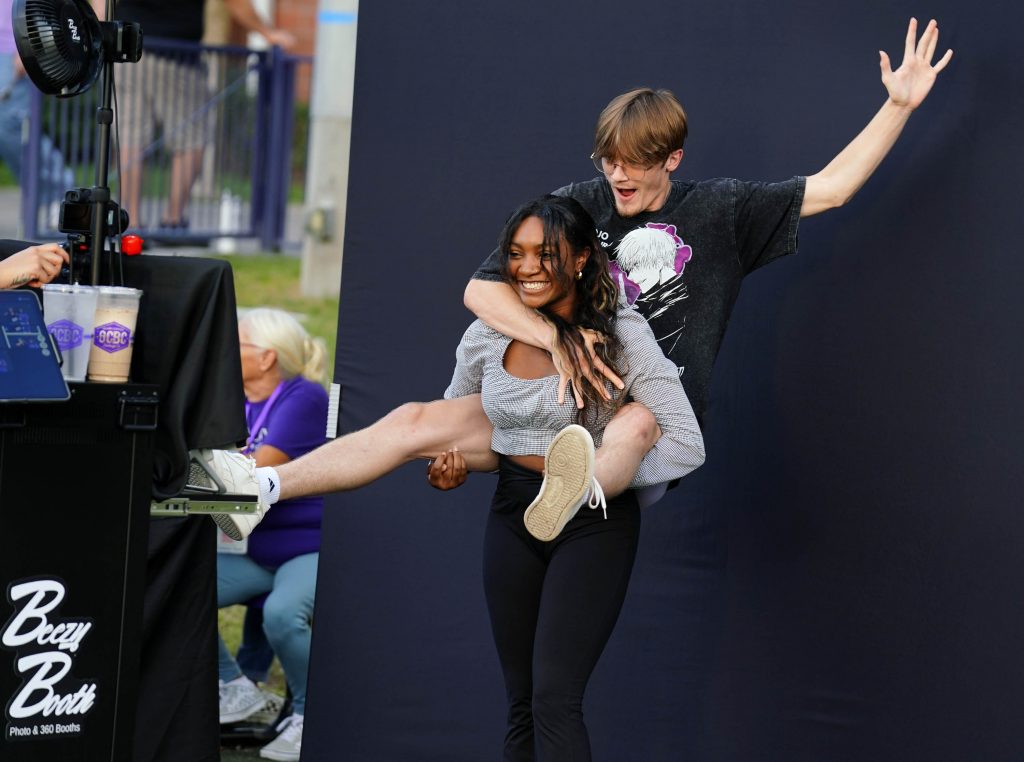 Students get their picture taken at photo booth during the Family Weekend Carnival on Oct. 11, 2025. -