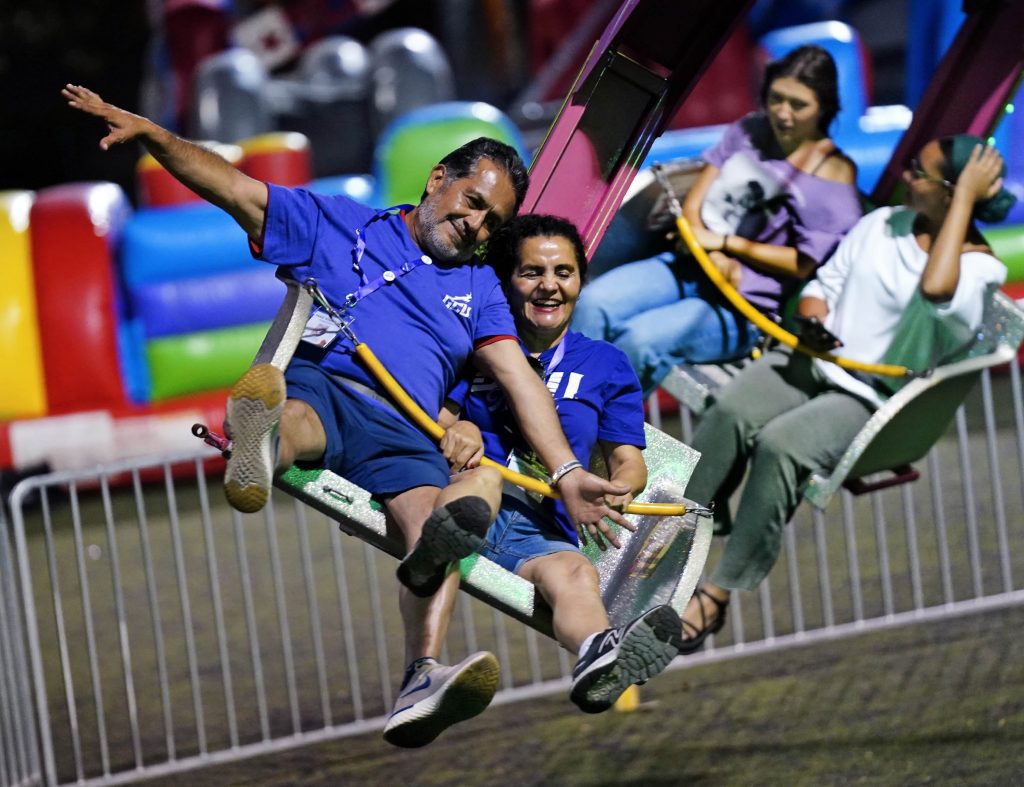 Family members show you're never too old to enjoy an amusement ride during the Family Weekend Carnival on Oct. 11, 2025. -