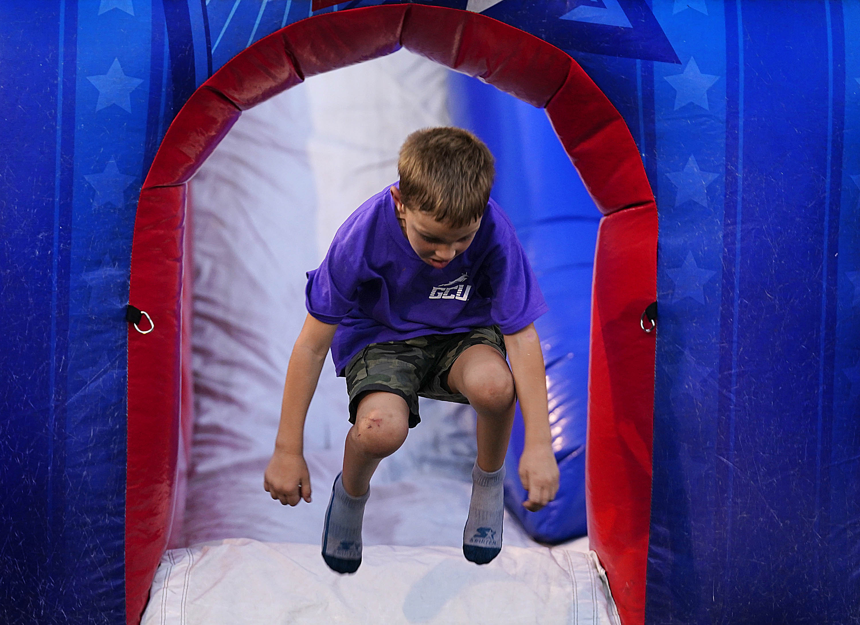 A young Lope sticks his landing as he exits an inflatable obstacle course during the Family Weekend Carnival on Oct. 11, 2025.