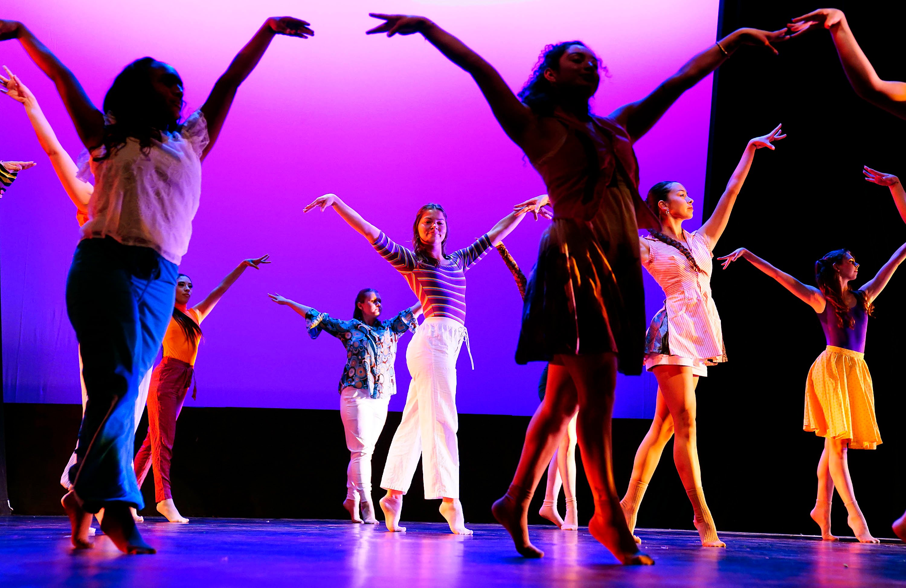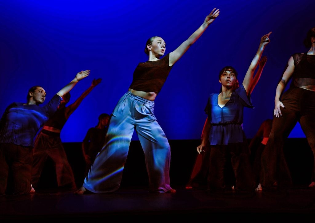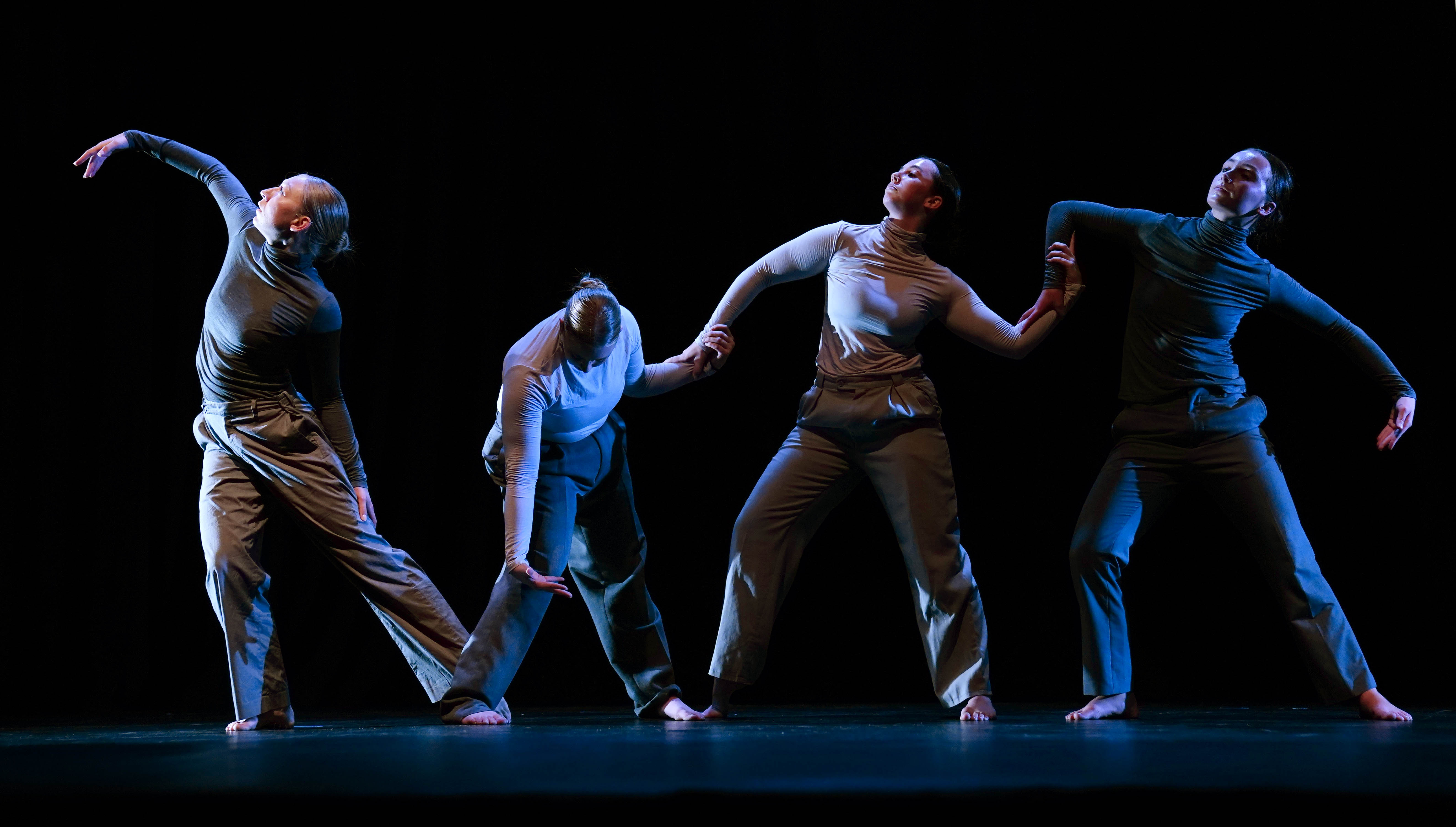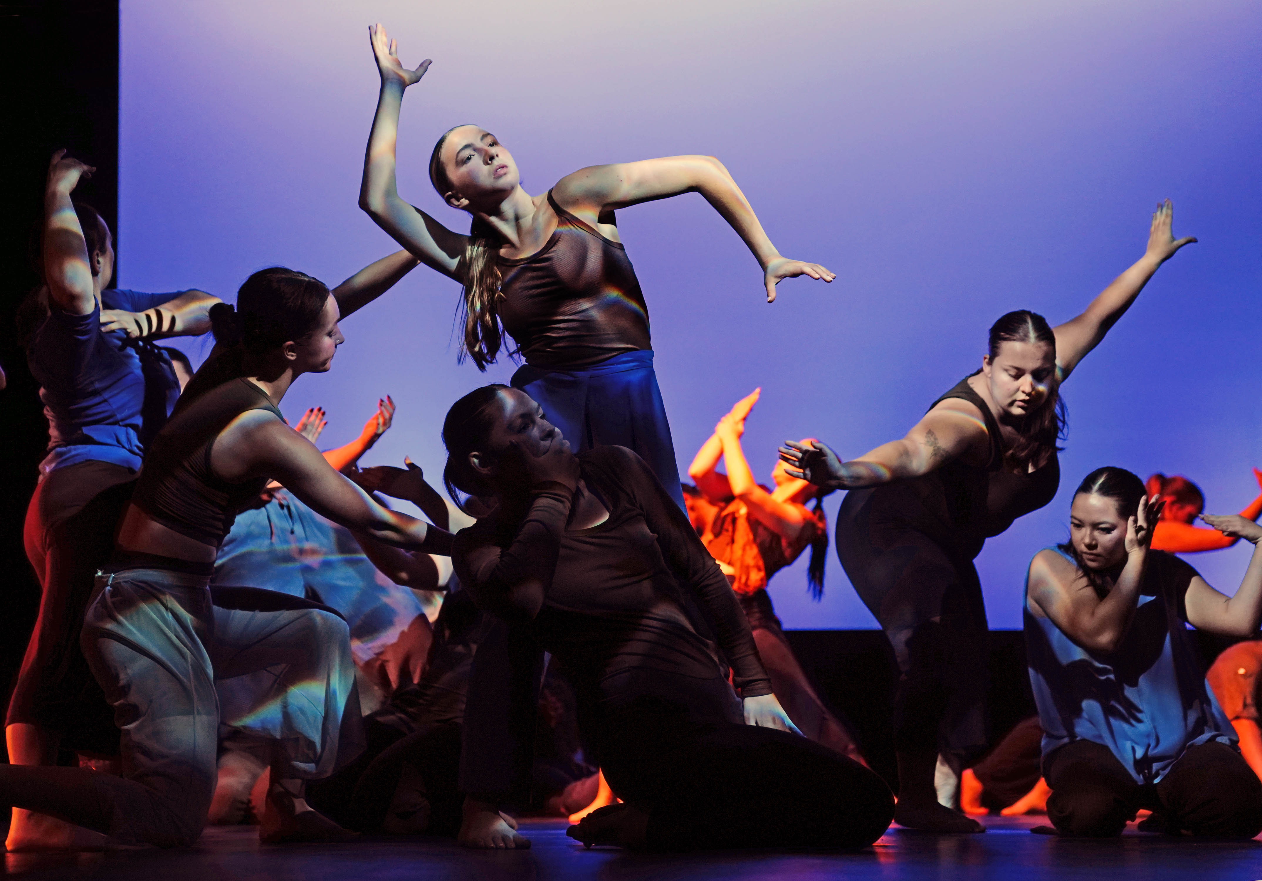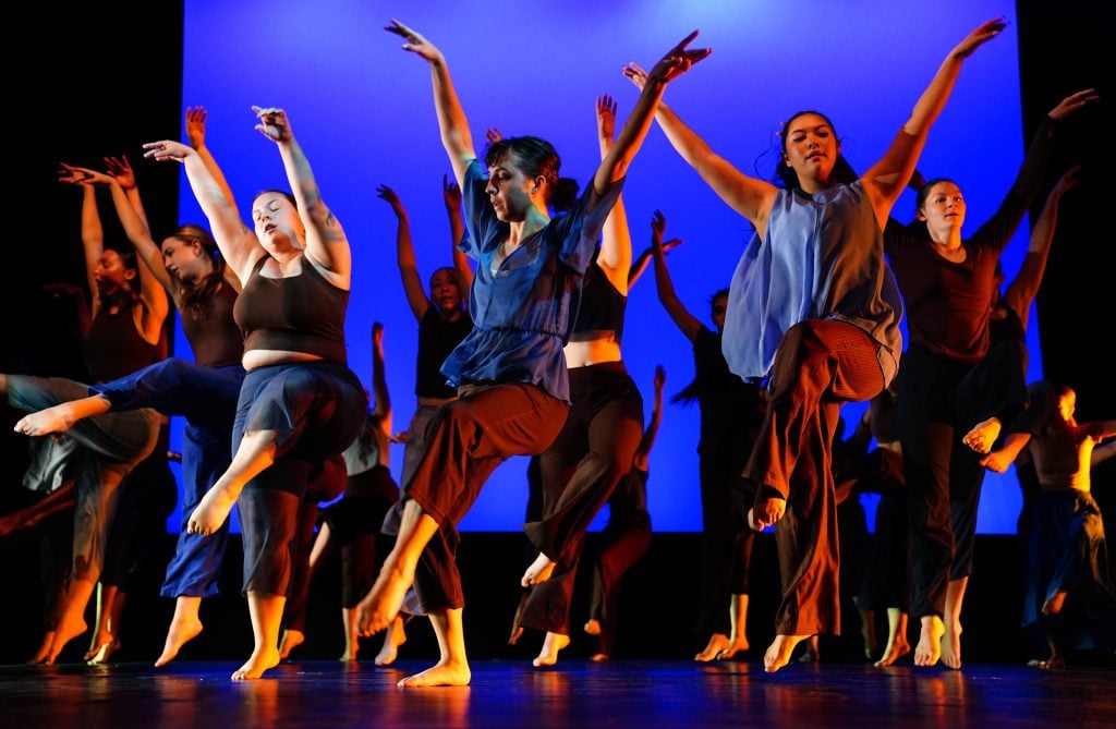 College of Arts and Media dance students perform during rehearsal of the Winter Dance Concert, "Uncharted,” at Ethington Theatre on Dec. 3, 2025. -
