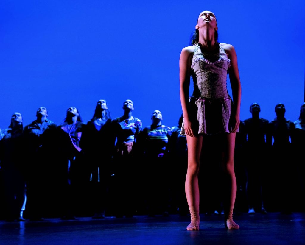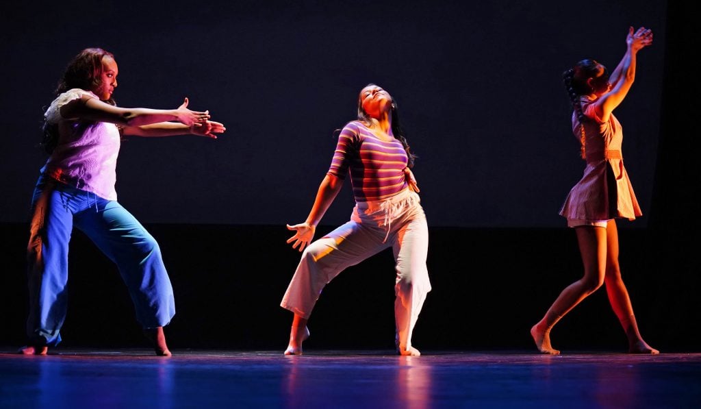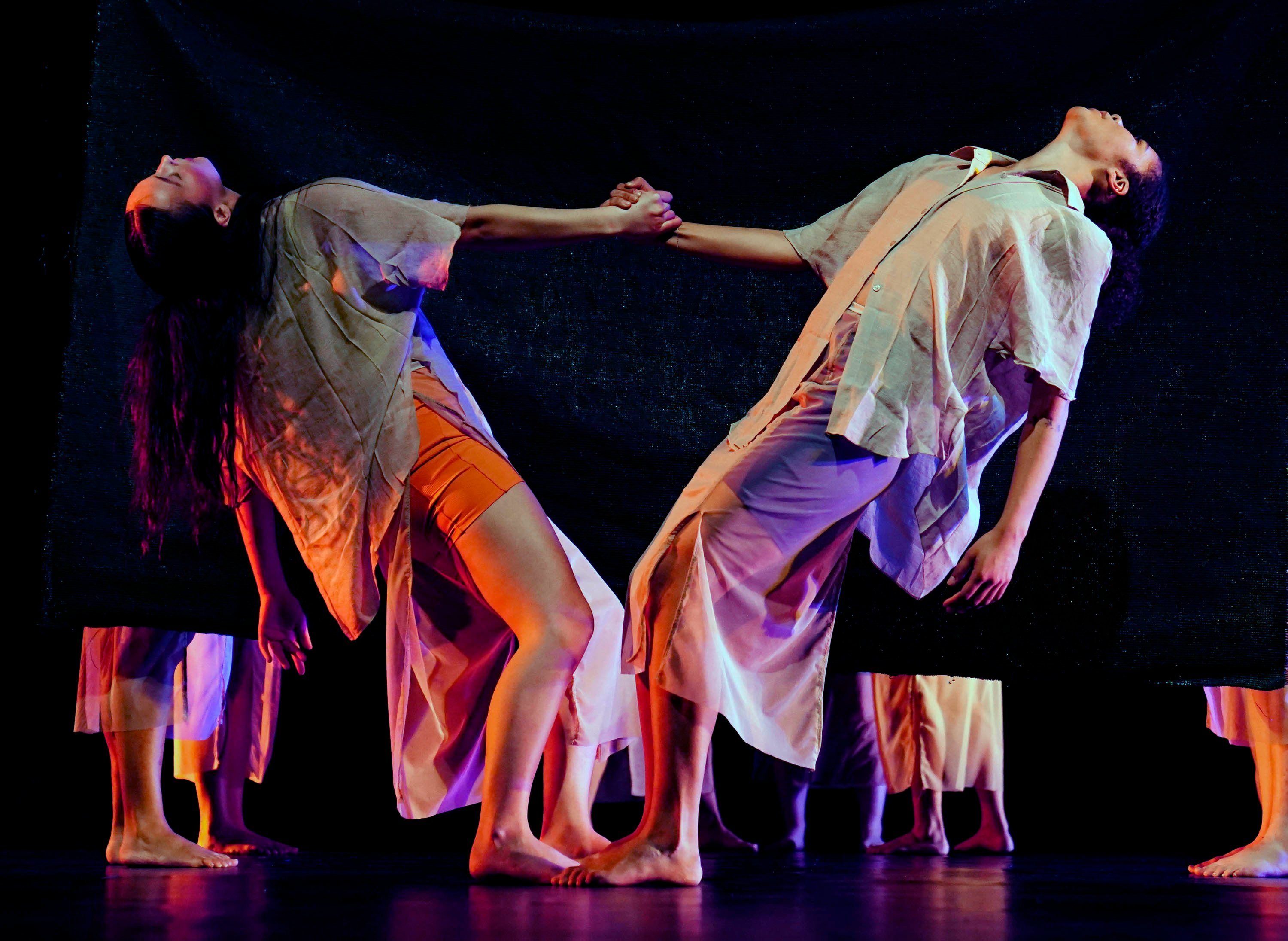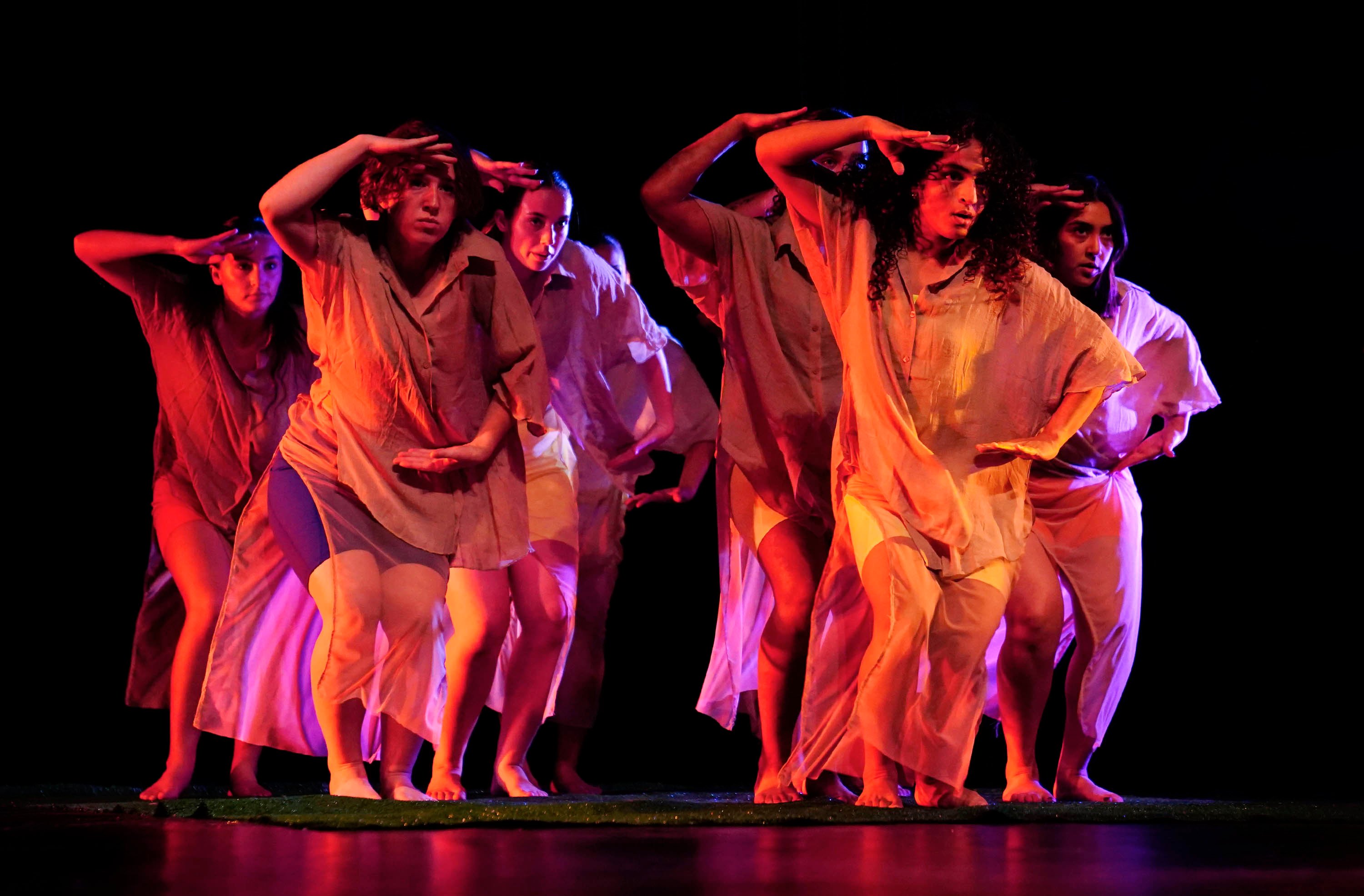 College of Arts and Media dance students perform during rehearsal of the Winter Dance Concert, "Uncharted,” at Ethington Theatre on Dec. 3, 2025. -
