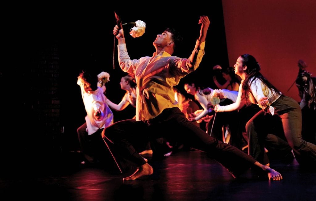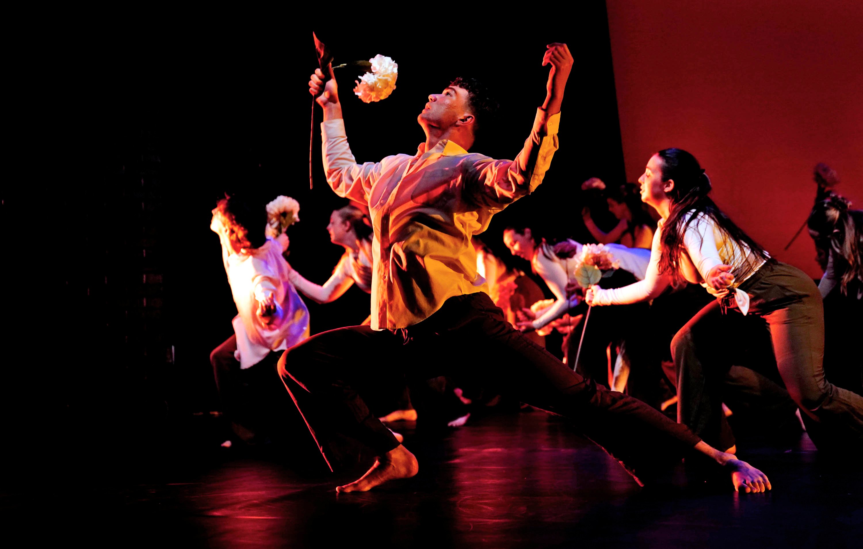 College of Arts and Media dance students perform during rehearsal of the Winter Dance Concert, “Uncharted,” at Ethington Theatre on Dec. 3, 2025. -